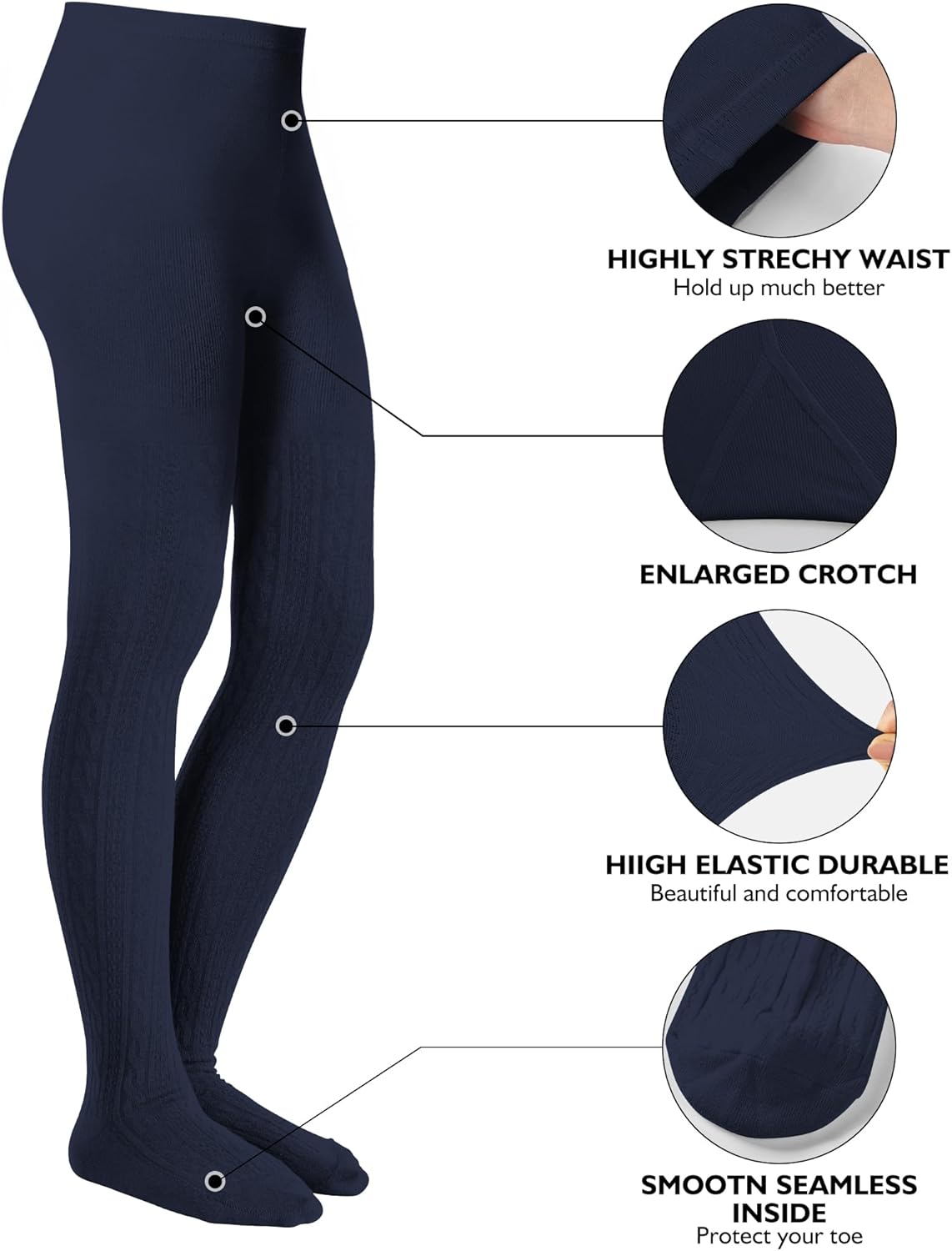 Baby Girls Tights Cable Knit Toddler Leggings Winter Solid Cotton Tights School Stockings 2 Pack 2T-12 Years