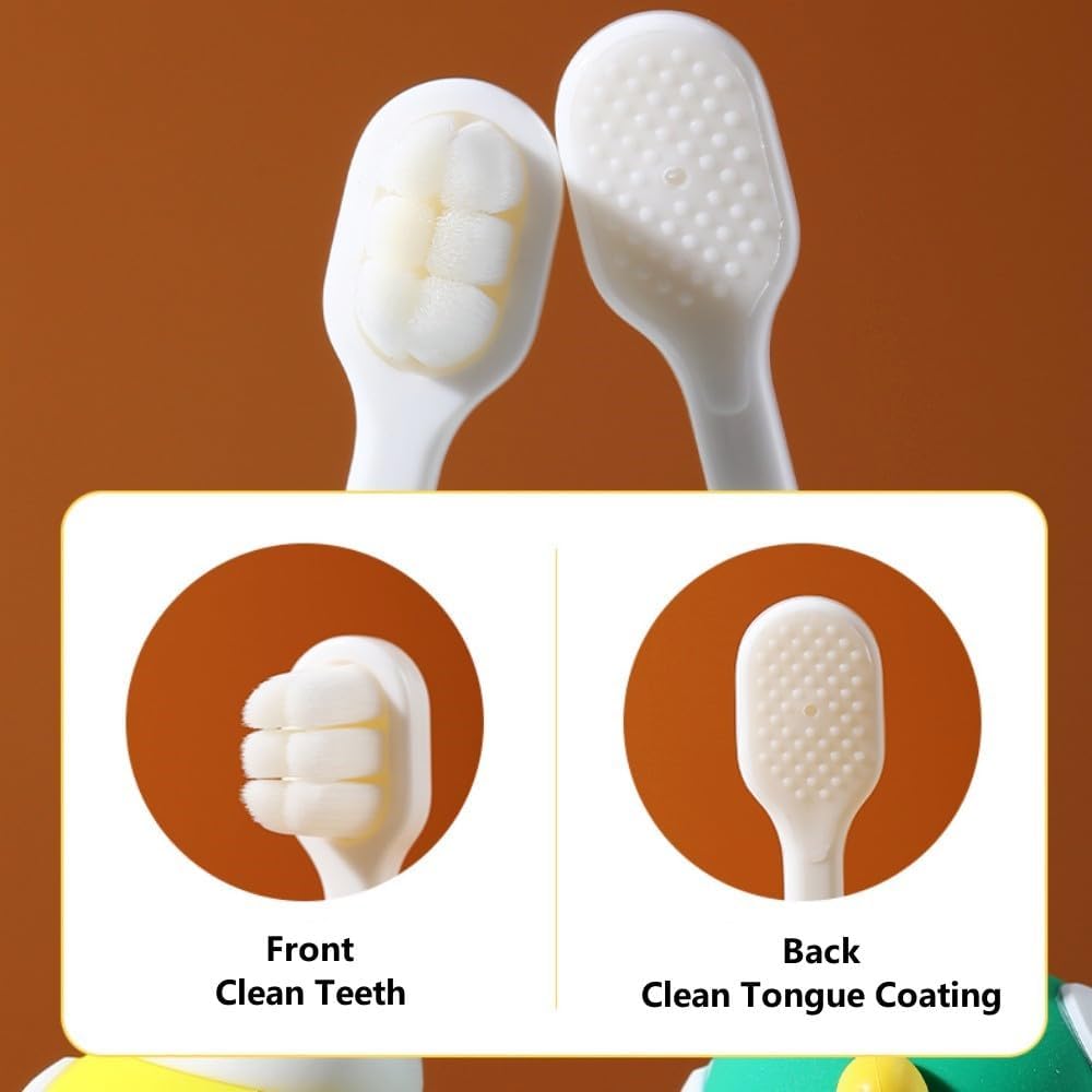 - 【Gentle Cleaning】 Our kids toothbrush feature soft, dense bristles with over 10,000 0.08mm nano bristles, offering a cloud-soft brushing experience. They delicately reach into the gaps between teeth and gums for effective cleaning without enamel damage, ideal for children with sensitive teeth.