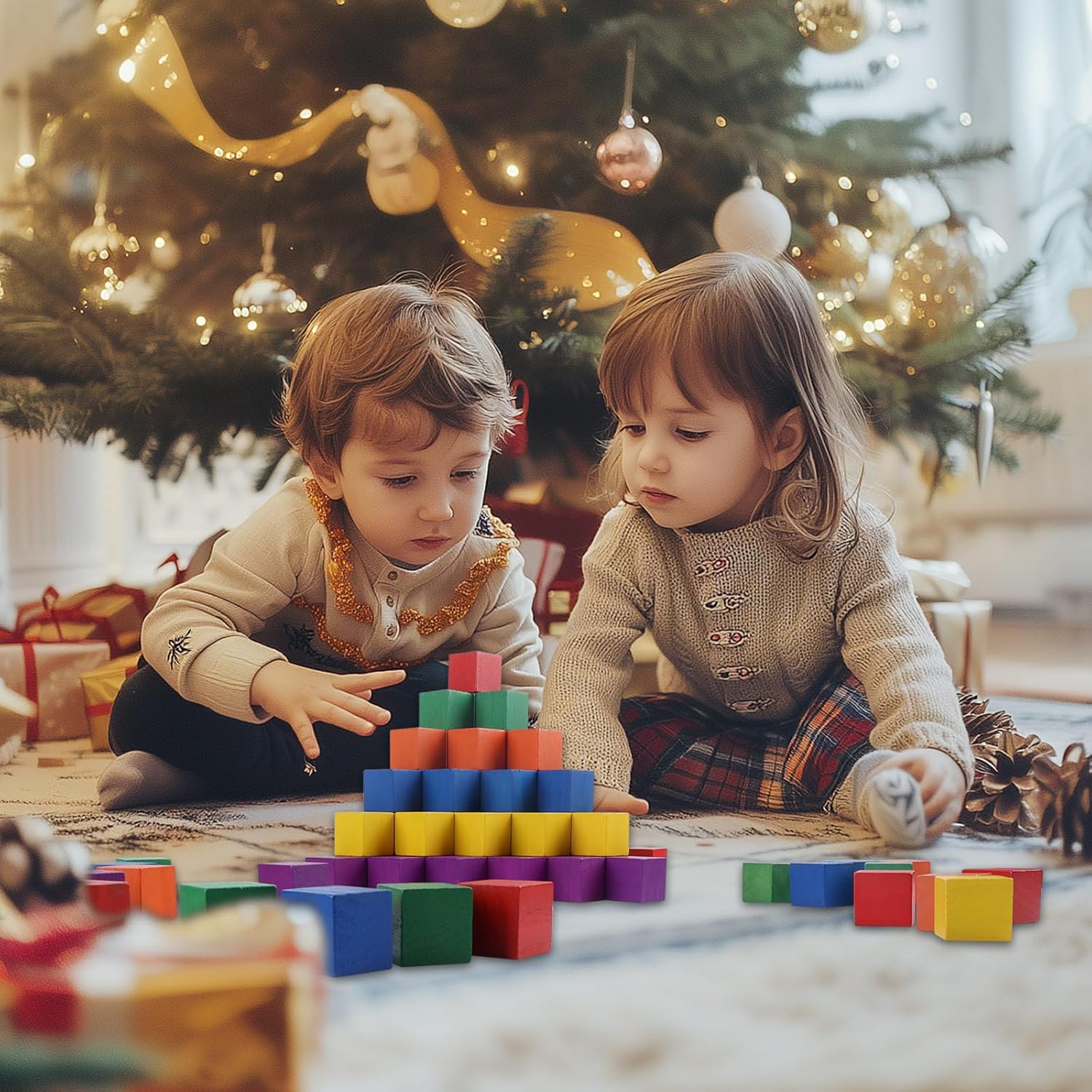 - 【Ideal Gift Choice】: Offelec colorful square wooden blocks are an ideal choice. Whether it's for birthdays, holidays, or special occasions, this set brings joy and learning opportunities to children. It not only entertains but also provides long-lasting benefits for their cognitive and creative development