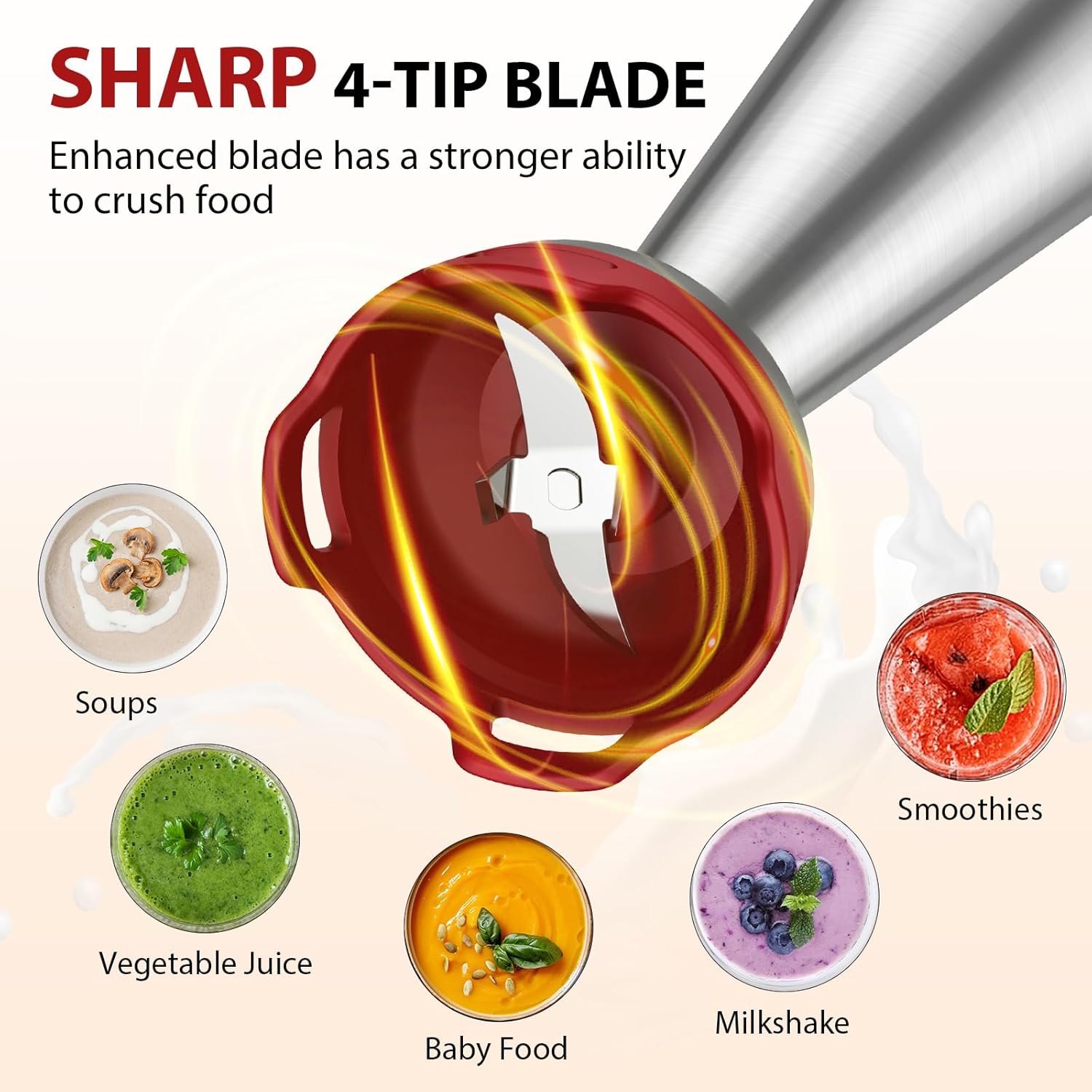 - Protect Your Cookware From Scratches: We know your cookware are expensive, so we understand how you feel and want to protect your cookware. This HB-8803 hand blender has an upgraded food-grade blade guard to protect your pots and pans from scratches. The unique anti-splash guard prevents splashing to keep you clothes and your kitchen spotless.