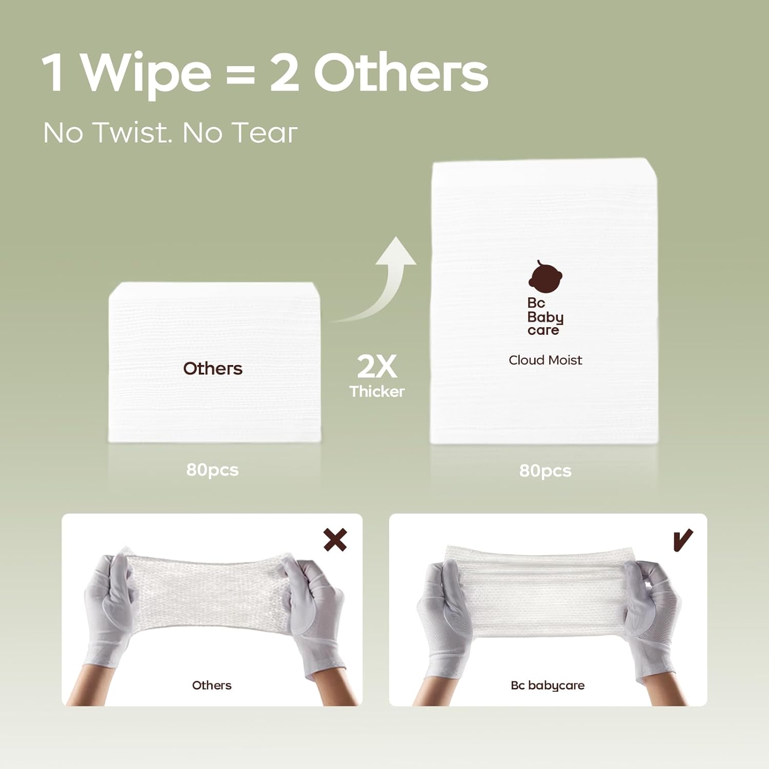 - Material Feature : 【Cloth-Like Wipes】Bc Babycare Wipes have an extra thick design 3X thicker than major brands in market, allowing you to solve all kind of messes with the least amount of wipes. 【Cloth-Like Wipes】Bc Babycare Wipes have an extra thick design 3X thicker than major brands in market, allowing you to solve all kind of messes with the least amount of wipes.