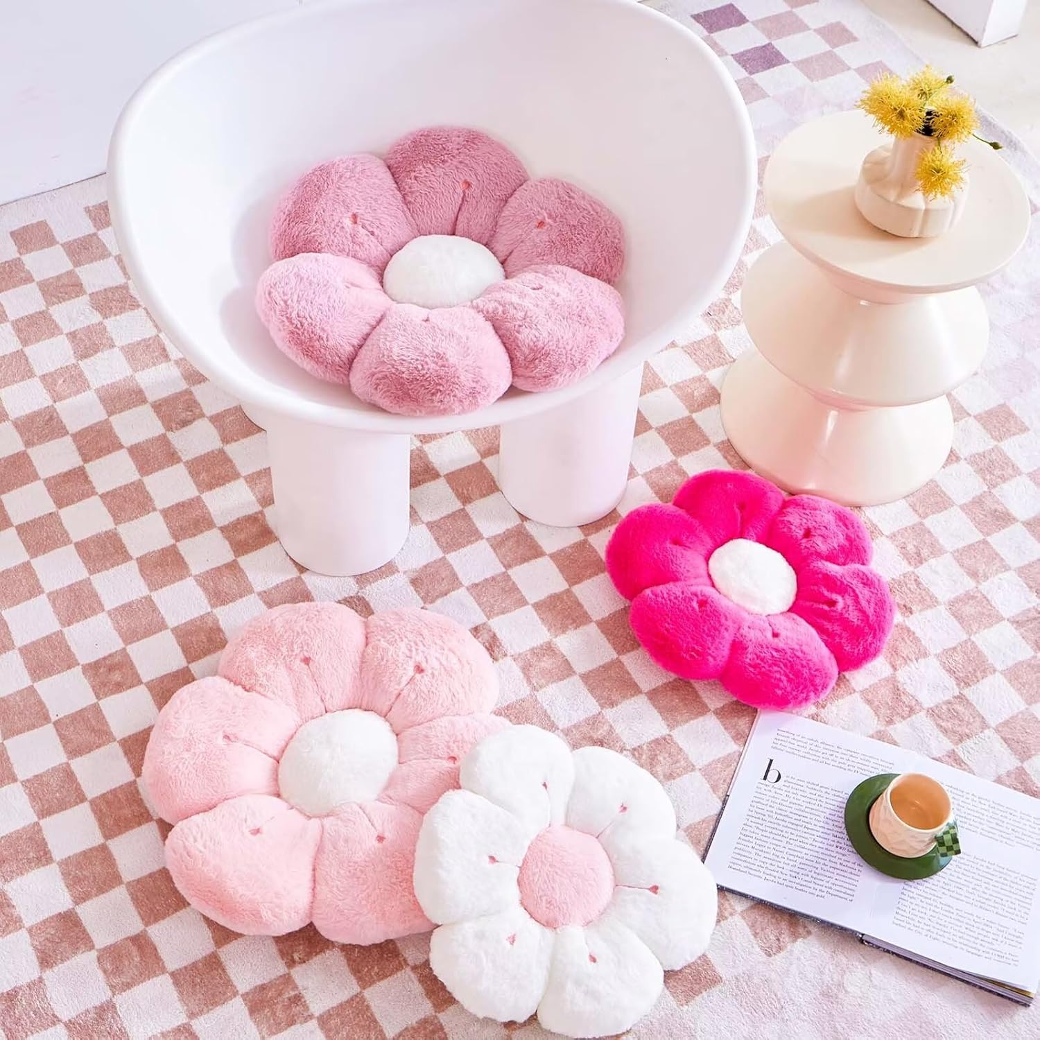 - Beautiful Daisy Flower Shape Pillow—The VBGYA Flower-Shape Floor Pillow features an innovative bionic design and is available in 14.9" and 19.6" sizes. These ultra-soft and comfortable plush pillows resemble blooming flowers, with vibrant colors and perfect shapes. A daisy pillow in any corner gives a refreshing touch.