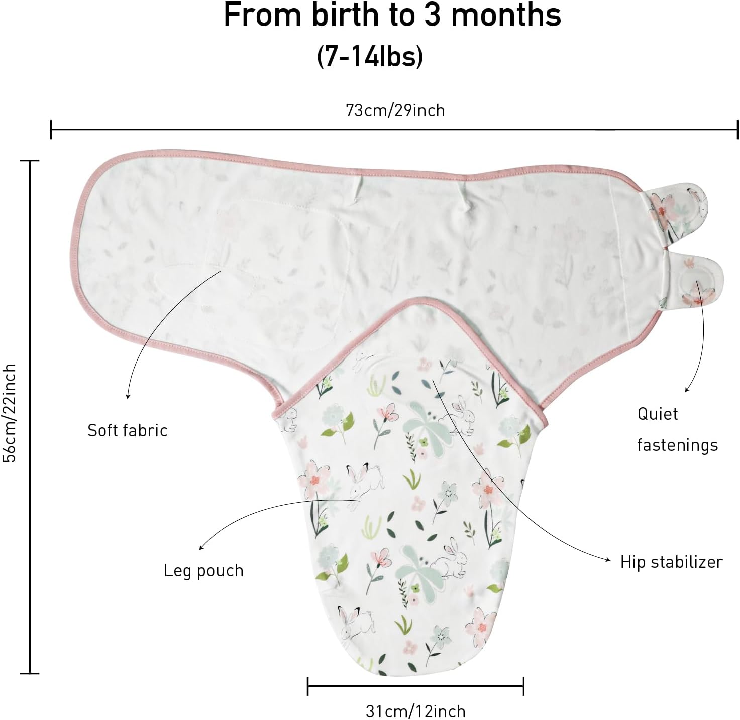 Baby Swaddle Sacks, 3-Pack Newborn Organic Cotton Swaddle Wrap, Adjustable Swaddling Blankets, Nursery Swaddling Essentials for Newborn 0-3 Months, Infant Shower Items Gift (Flowers & Rabbits)