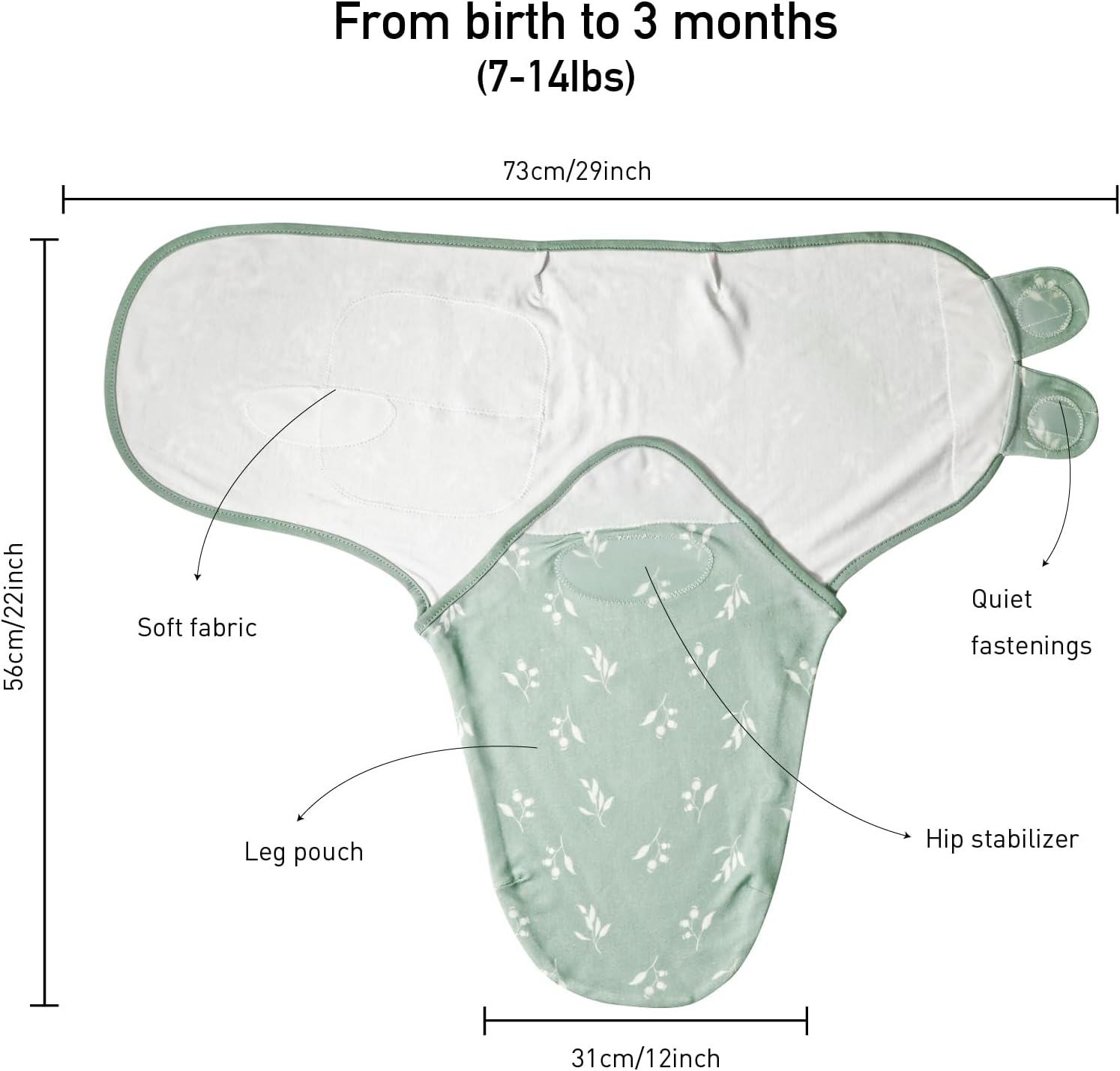 - ADJUSTABLE FIT FOR YOUR BABY: The adjustable baby swaddle sleep sacks comes with soft fabric wings with secure hook and loop attachments, so you can easily adjust and achieve the ideal baby fit, helping to prevent the startle reflex and providing your baby with a soothing and comforting swaddling experience that mimics the womb environment.