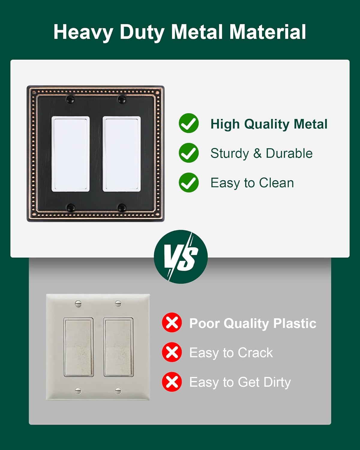 - Durable Metal Construction - Built to last, constructed from thick and sturdy metal, this wall plate cover ensures long-lasting durability and sturdiness, allows for easy cleanup and resistant to tarnishing and corrosion, not easy to break. Ensuring it remains a stunning addition to your home for years to come.