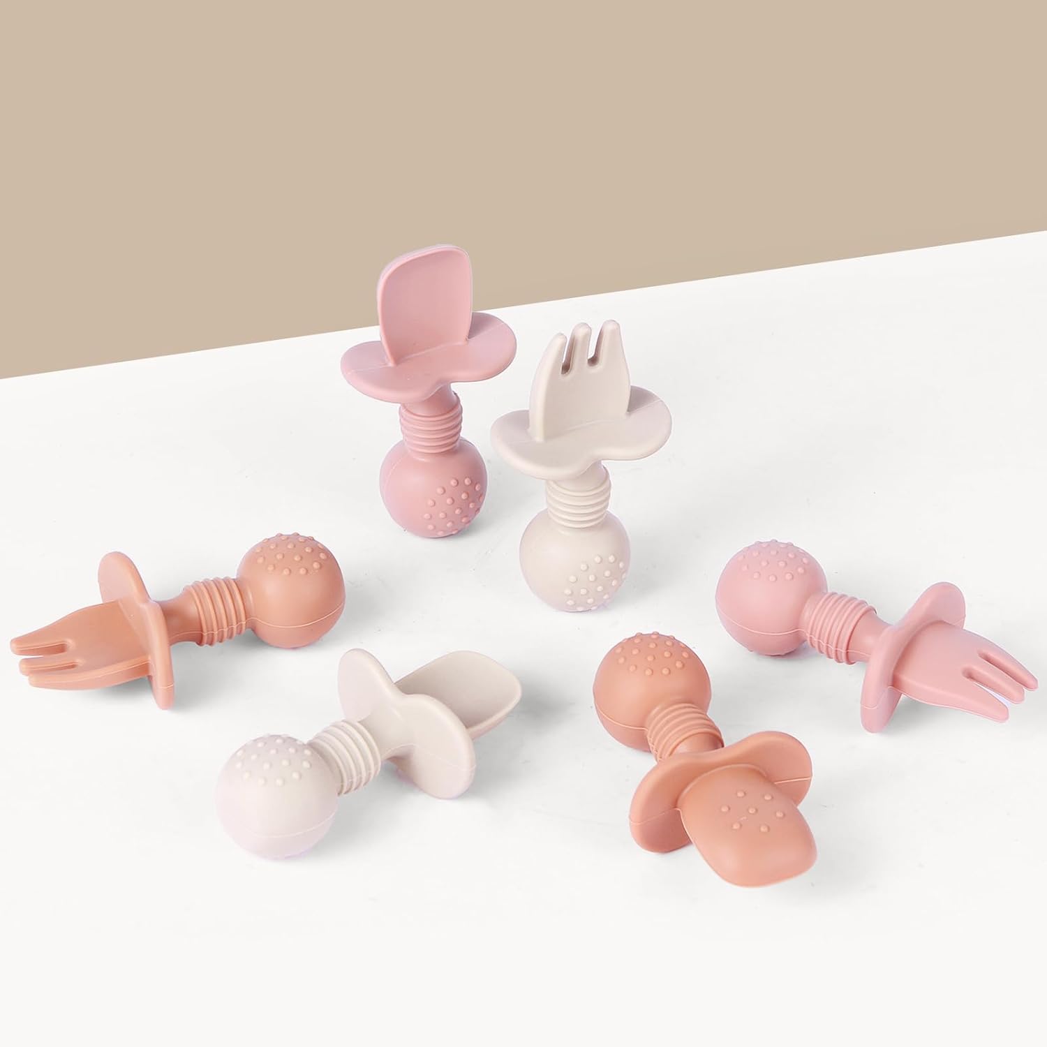 - Silicone Baby Feeding Set: Each set of baby utensils includes 3 spoons and 3 forks, these spoon and fork set will make it easy for your baby to master the utensils as he or she transitions to solid foods and self-feeding. Ideal for first-time and toddler babies.