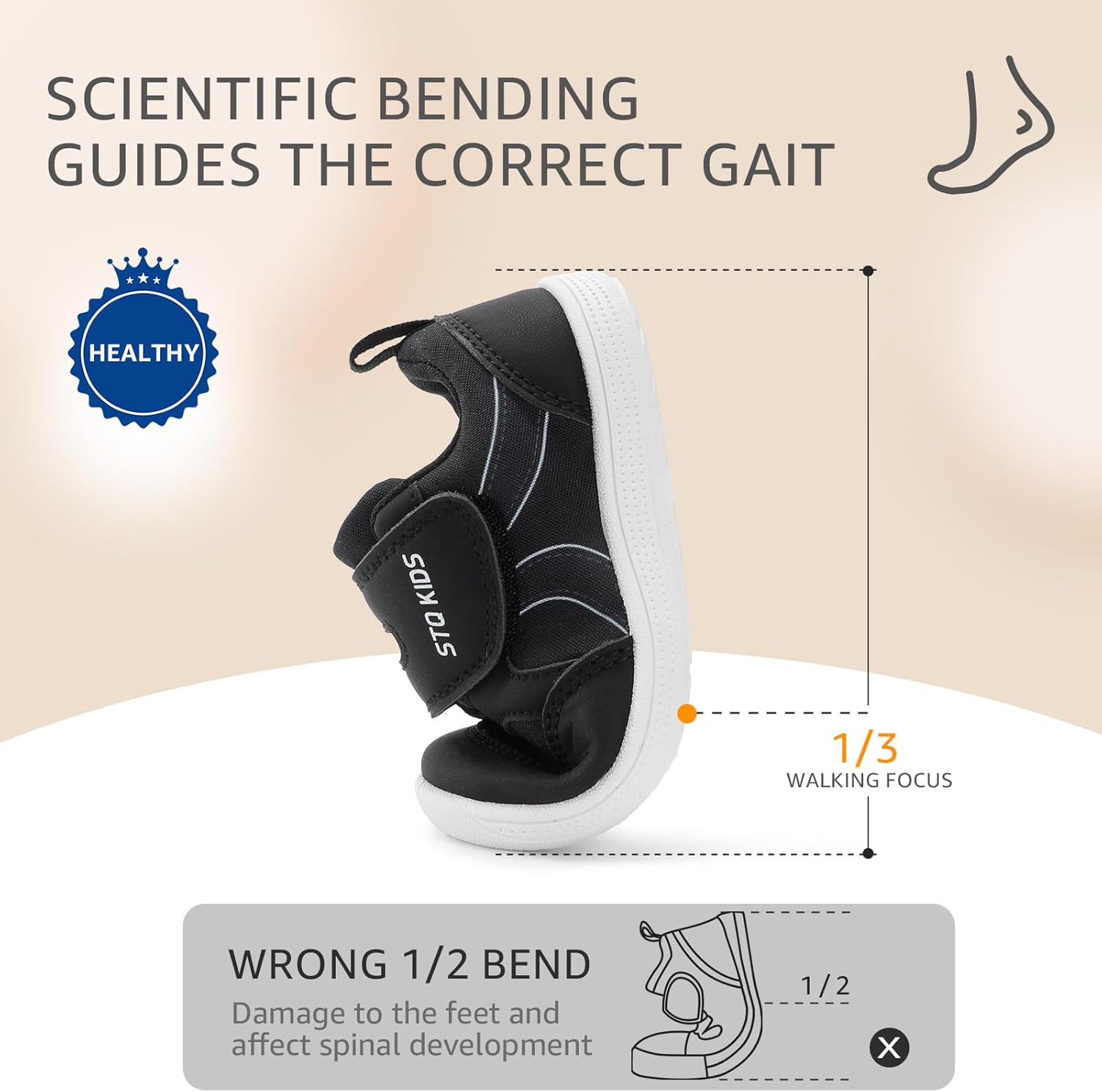 - [ Wide Toe Box ]: The wide toe box toddler shoes design provides ample room for little toes, alleviating discomfort from pressure and promoting healthy foot development. Available in various sizes, barefoot shoes kids ensure comfort during active play