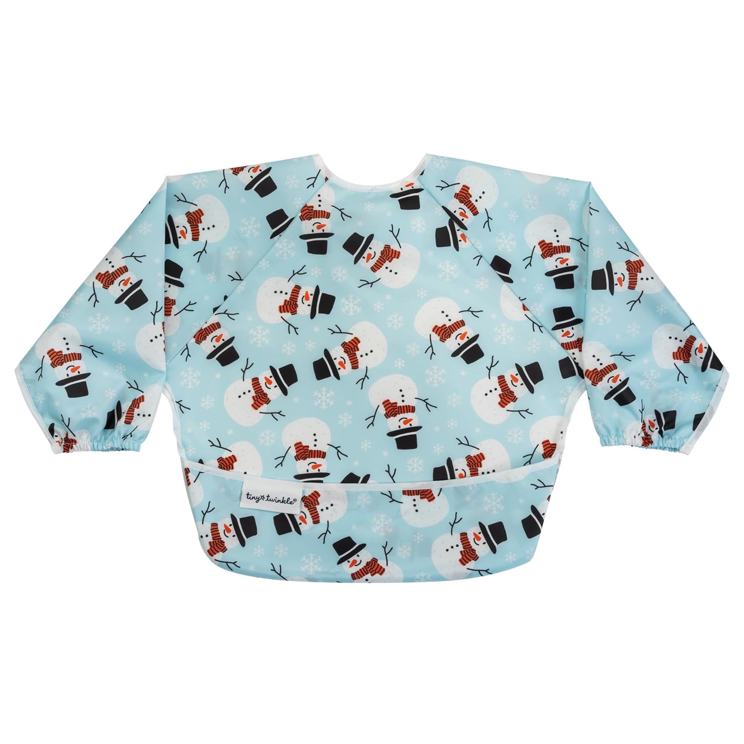 Tiny Twinkle Mess Proof Baby Bib,Waterproof Smock Baby Bib for Eating,Machine Washable Long Sleeve Bib,Baby Led Weaning,Toddler Bib (Snowman, Small 6-24 Months)