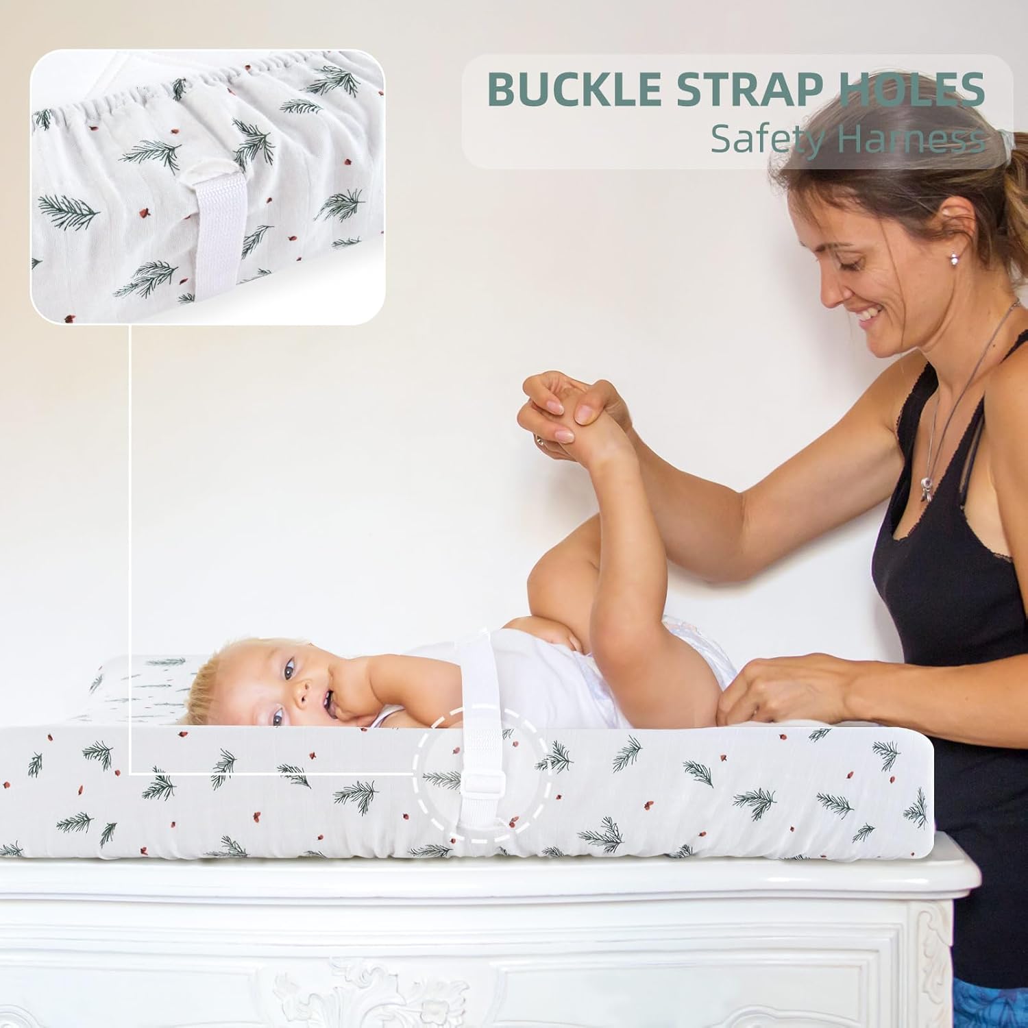 - Designed for Convenience - The diaper changing pad covers measures about 32" x 16", which is designed to fit most contour changing pads, flat changing table pads, bassinet mattresses and cradle mattresses. Buckle strap holes provide access to safety straps on changing pads.