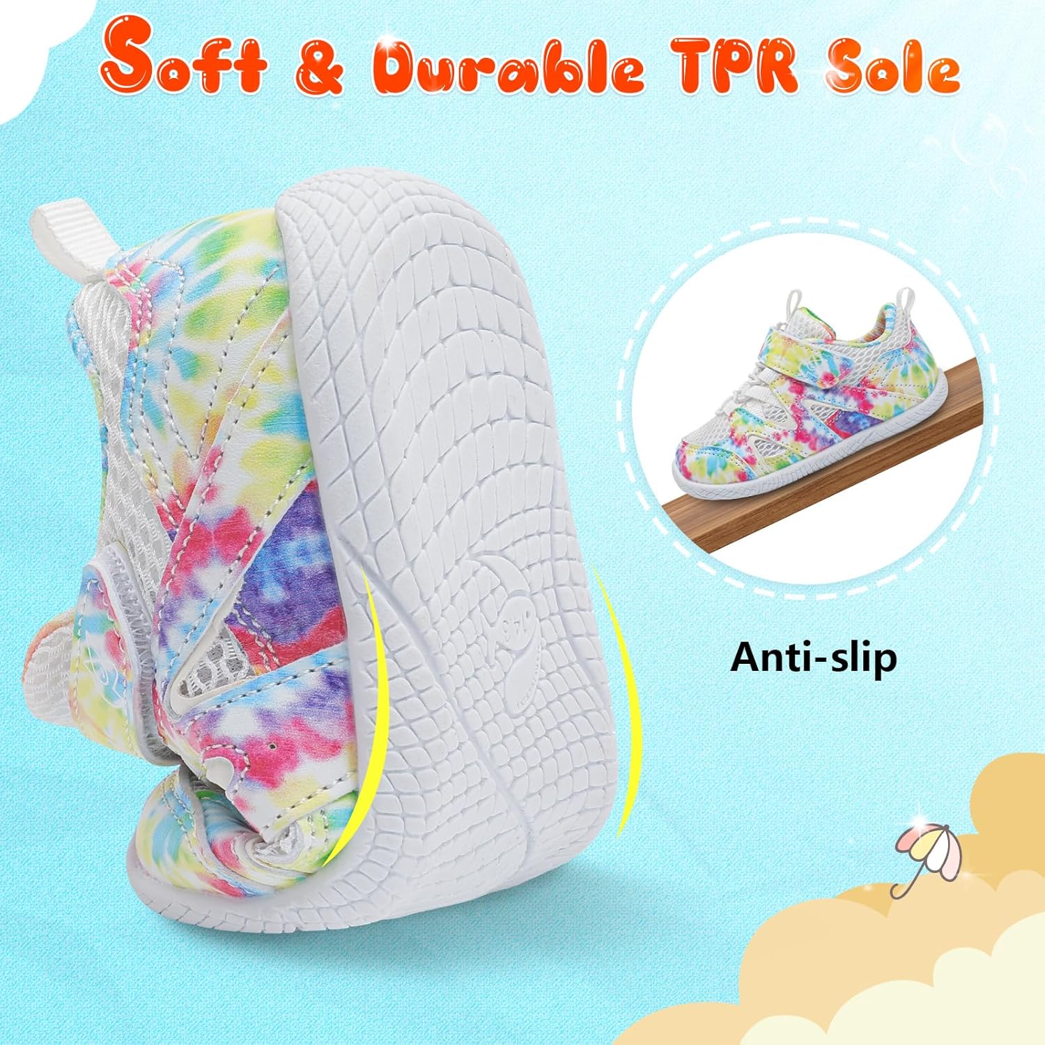 - Anti-slip & Hard wearing: The soft TPR sole of the baby sneakers ensures non-slip and hard wearing performance, The anti-collision toe cap protects your child’s feet from being hurt by sharp objects.