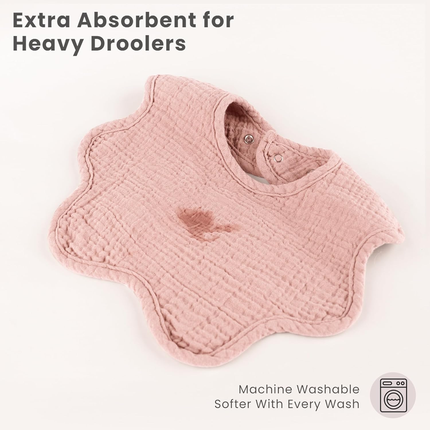 - Soft & Absorbent: Made from 100% pure cotton muslin, these bady bibs are ultra-soft. Perfect for newborns or babies prone to spitting up, these drool bibs. Ideal for teething babies, they make excellent baby bibs for drooling and teething.