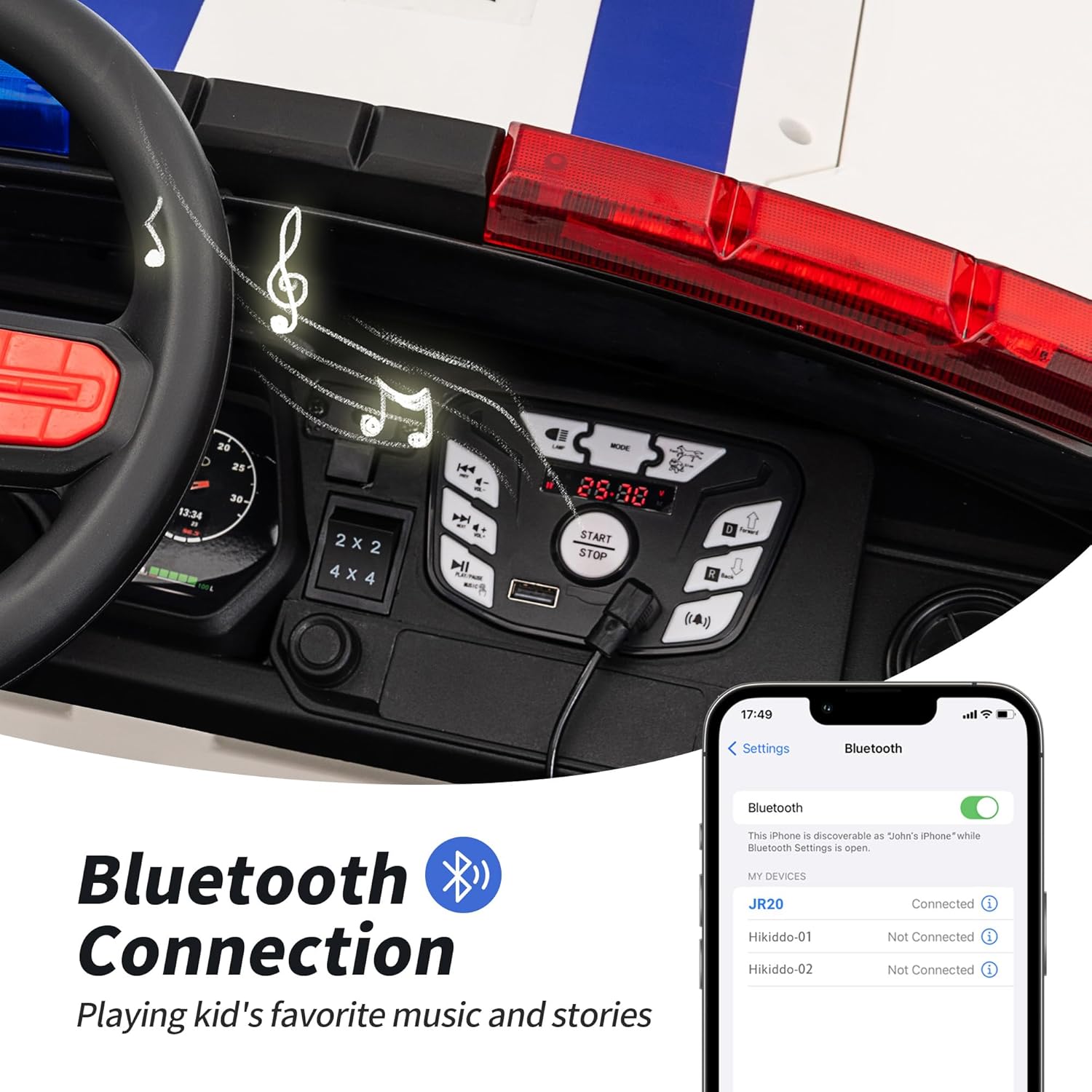 - SAFETY PRIORITY: Hikiddo police car features rear wheel suspension, offering a stable and comfortable ride for your child. Combined with soft start technology, it ensures enhanced safety when they drive.