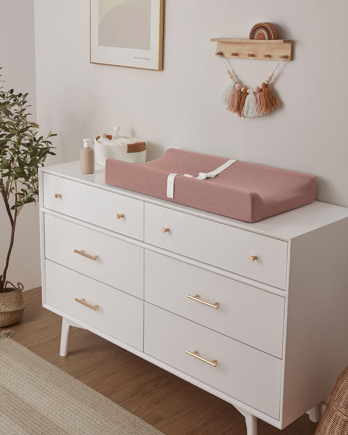 Blissful Diary Muslin Baby Changing Pad with Waterproof Lining Foam, Diaper Changing Table Pad with Cover for Dressers (Dusty Pink, Rectangular)
