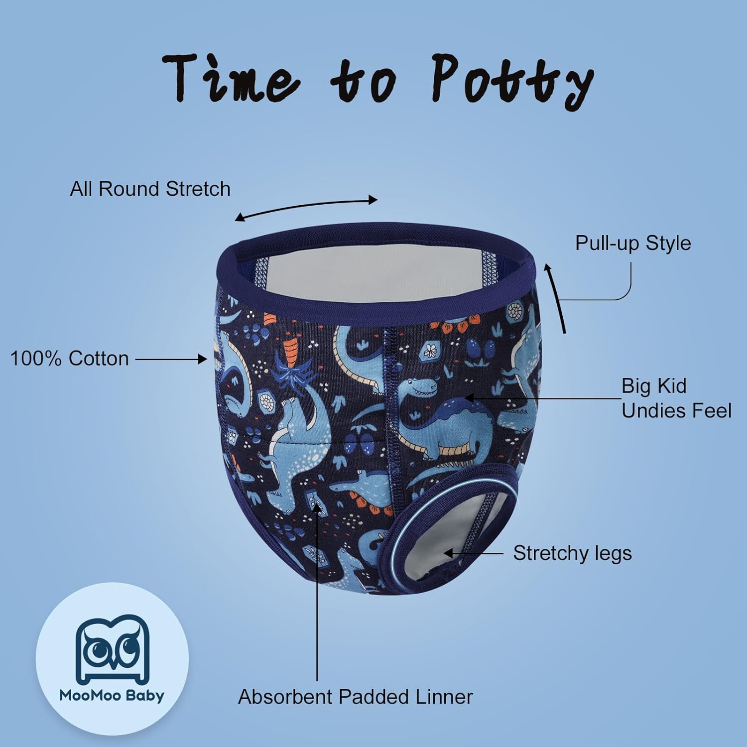 MooMoo Baby Absorbent Potty Training Pants 8 Packs Cotton Training Underwear for Boys 3T