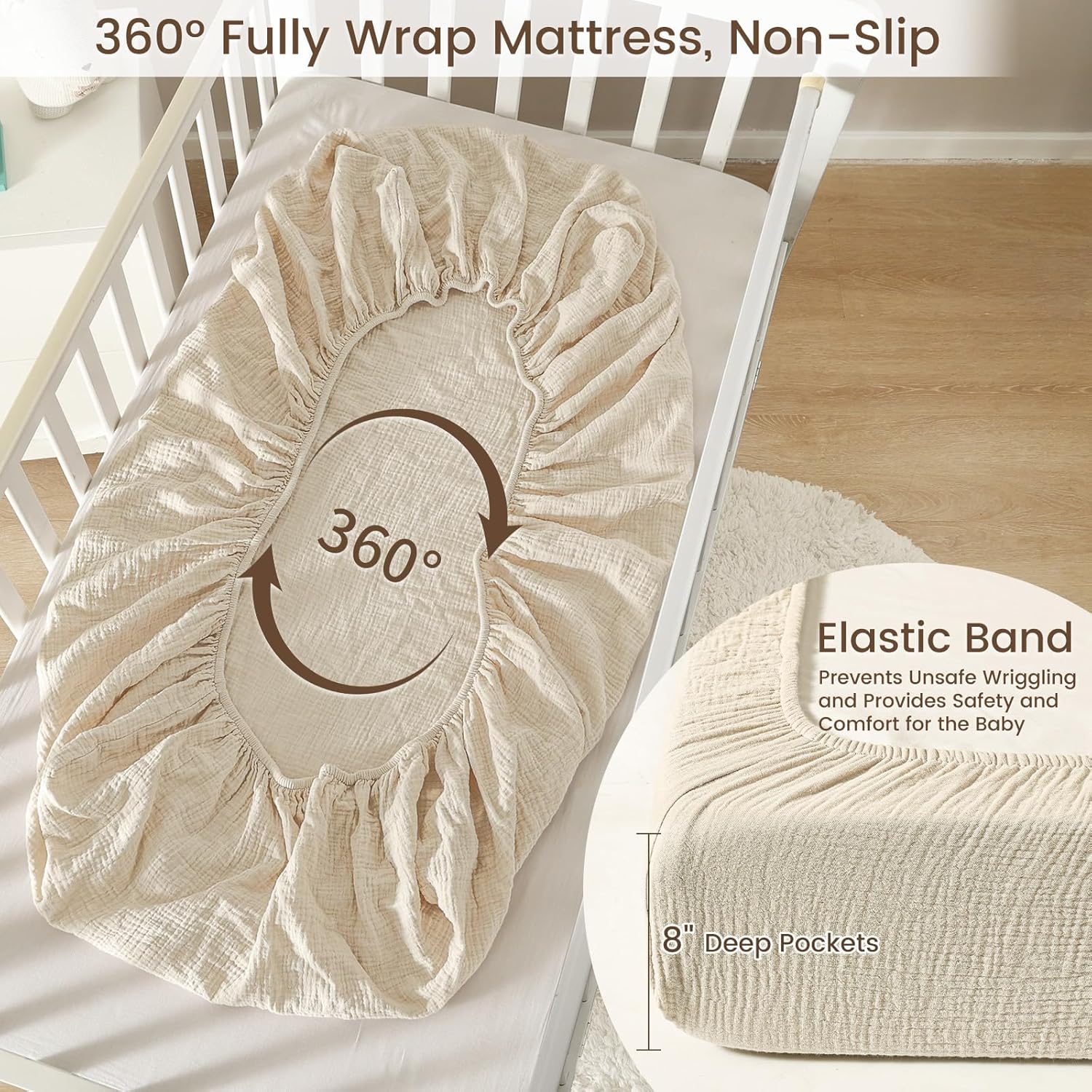 - 100% Muslin Cotton: Our crib sheets are made of 100% muslin cotton, ultra soft, gentle and skin-friendly, perfect for delicate baby skin. 2-Layer muslin cotton features better moisture absorption and breathability, prevent over-heating, help keep baby feel refreshed and comfort all year round, and perfect for summer use.