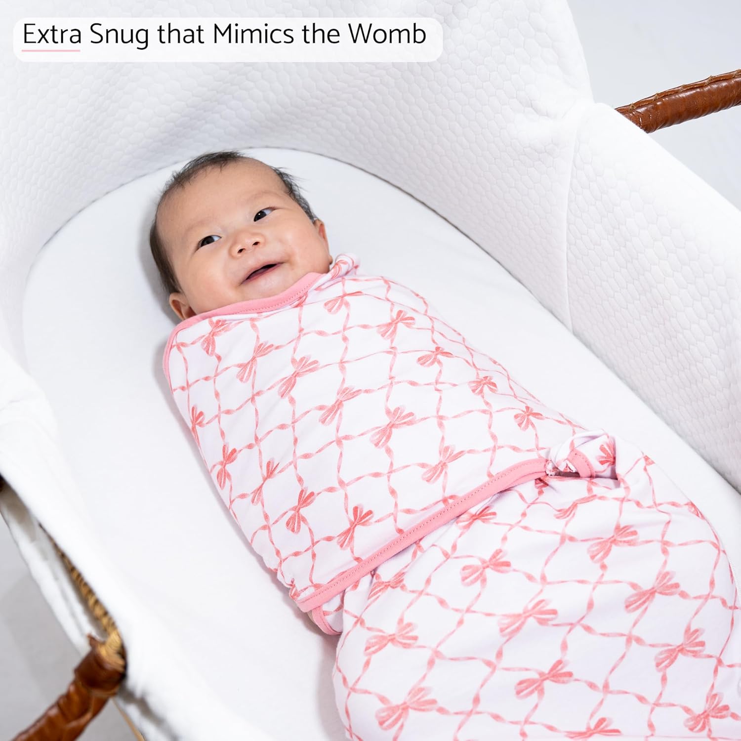 LollyBanks Baby Swaddles 100% Organic Cotton, 3-6 Months Baby Girl Swaddles with Easy Change Zipper, Swaddle Sack for Newborn Girls (Pink Bow Print)
