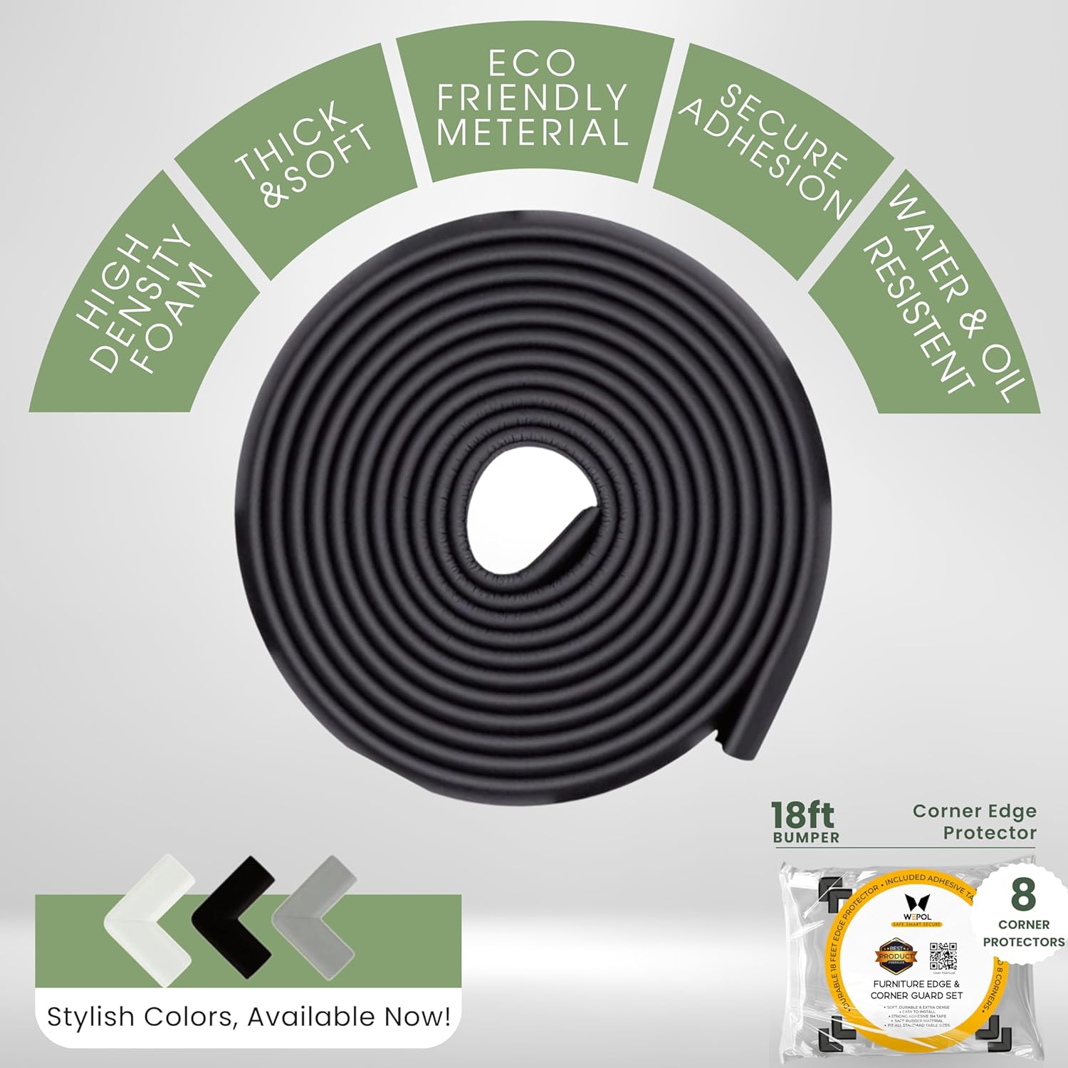 Table Edge Protector for Baby Proofing (18ft Edge+8 Corners) Baby Proof Corners and Edges Guard, Soft NBR Rubber Foam 3M Adhesive, Furniture Corner & Edge Safety Bumpers for Table & Fireplace-Black