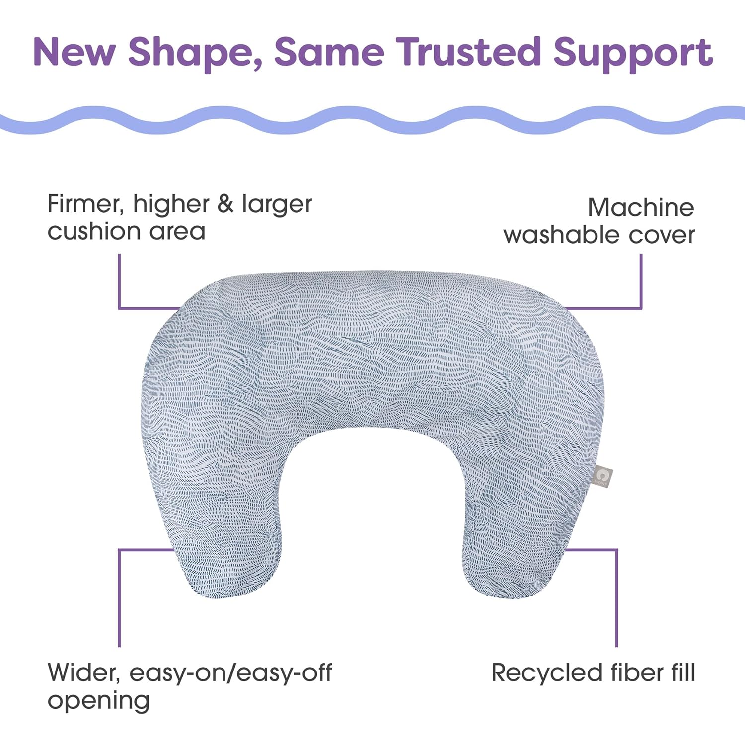 Boppy Nursing Pillow - Ergonomic Bottle & Breastfeeding Pillow with High, Firm, Large Area, Water-Repellent Cushion with Washable Cover; Baby Safety Alliance Verified - Blue Speckled Current
