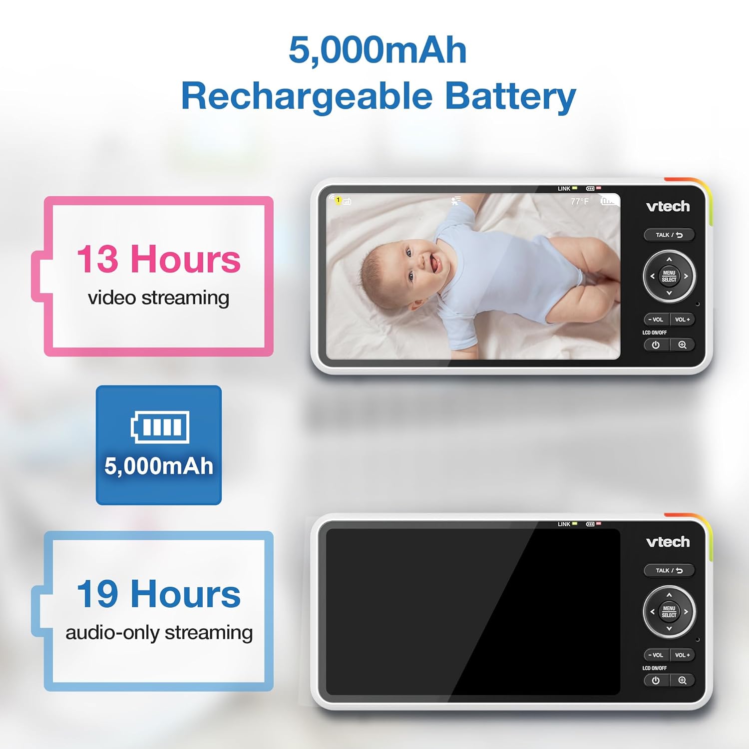 - [5,000mAh RECHARGEABLE BATTERY WITH UP TO 13-HOUR VIDEO STREAMING] - Stay connected to your baby all night long with a single charge, offering up to 13 hours of continuous video streaming or up to 19 hours of audio-only streaming.