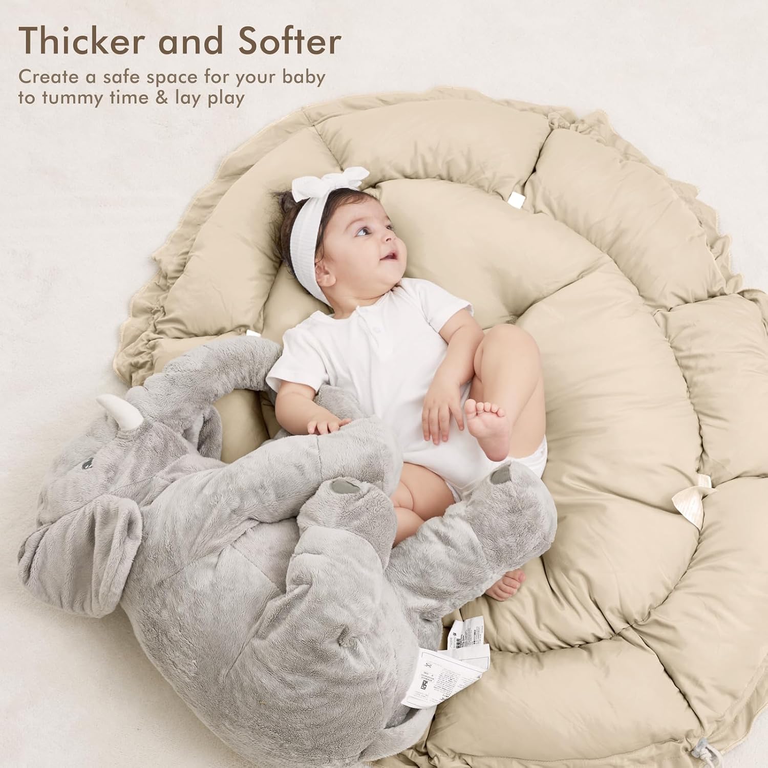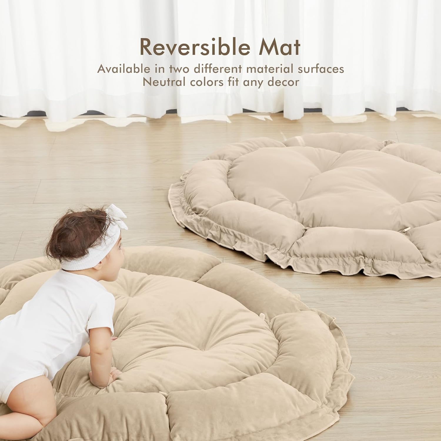 - THICKER & SOFTER: The reversible play mat crafted from premium plush material, offers a fantastic amount of cushion. Its neutral color scheme blends in with your home’s aesthetic so you can keep it out even after playtime is over.