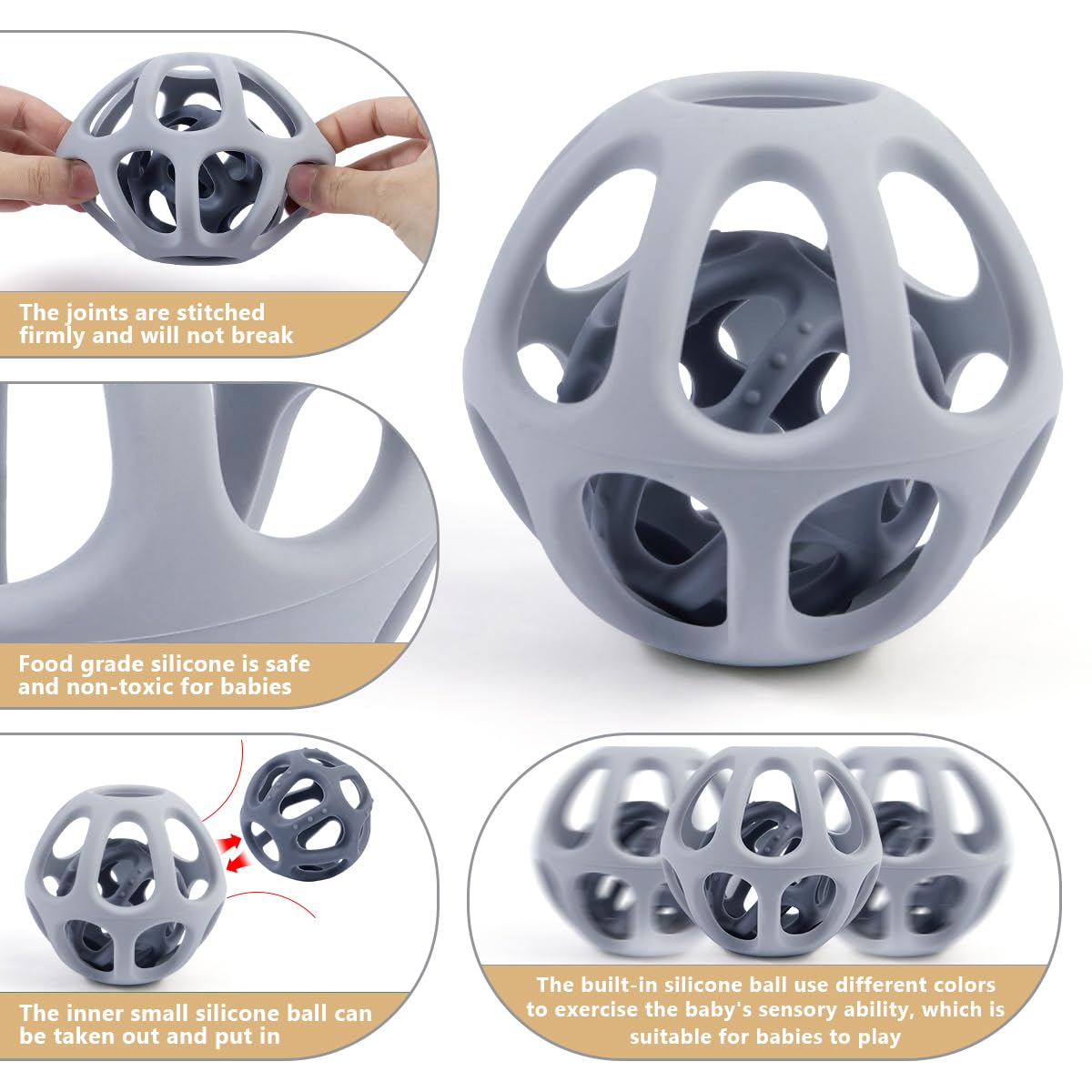 - 【Teething Relief】The soft teething toy eases the discomfort of teething and helps your baby get through the painful teething time. Lightweight and compact, the baby teether ball is easy to fit into a diaper bag.