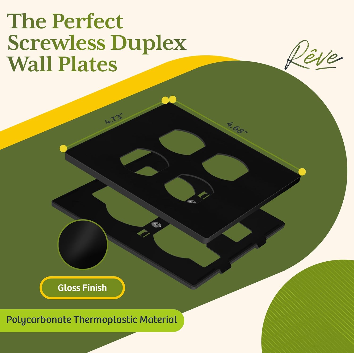 TG Screwless Duplex Wall Plate, Child Safe Double Receptacle Outlet Cover, Standard Size, 2-Gang 4.68" x 4.73", Unbreakable Polycarbonate Thermoplastic, UL Listed, SP-S2-BK, Glossy, Black