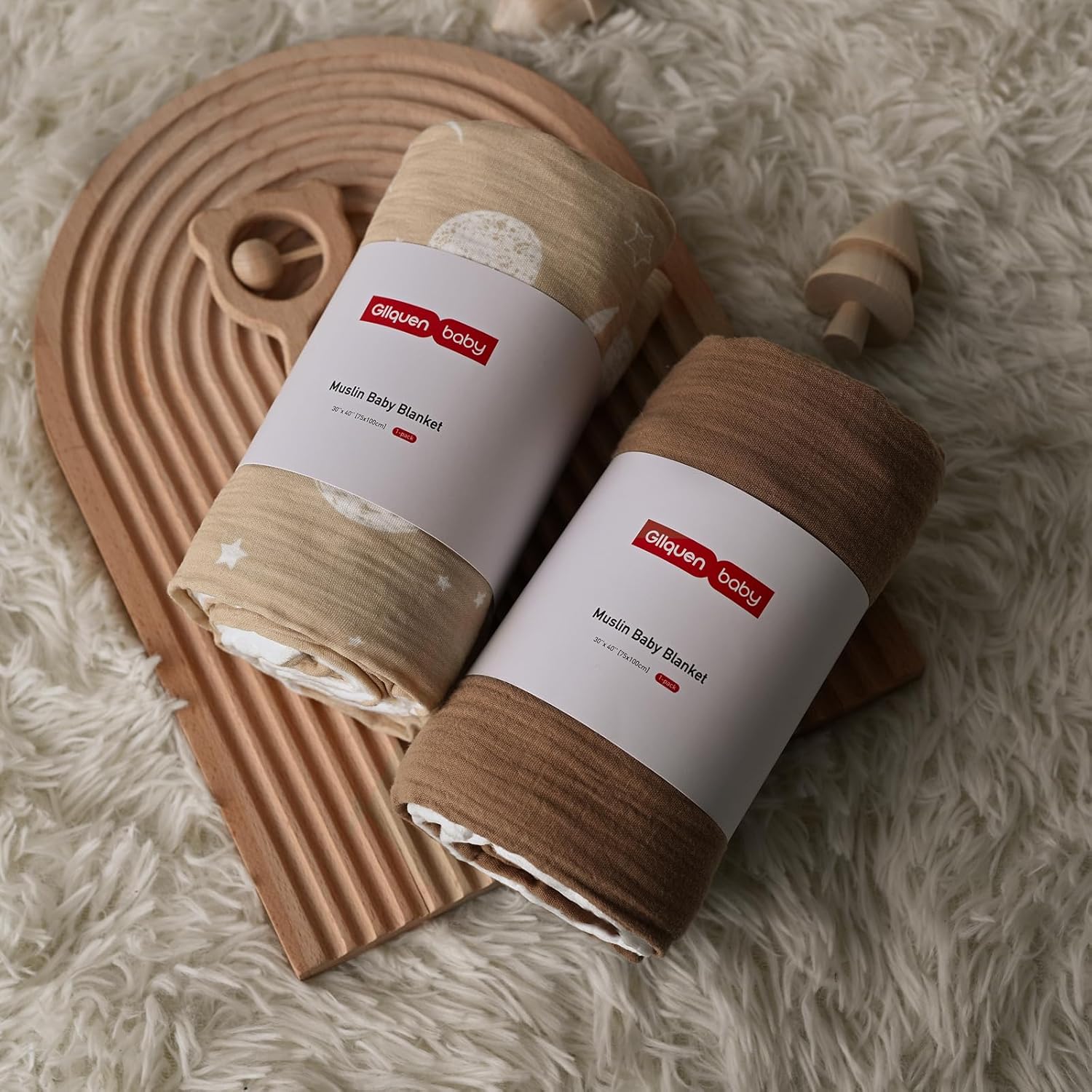 - 2-Pack Charming Double-layer Design: All of our products have passed the OEKO-TEX STANDARD 100 certification.Gllquen Neutral Baby blankets are made of 100% cotton(muslin) on the front and ultra-soft dot fleece fabric on the back. The toddler blanket features a 3D raised design that mimics a mother's arms, providing a soft touch and soothing effect to soothe the baby.