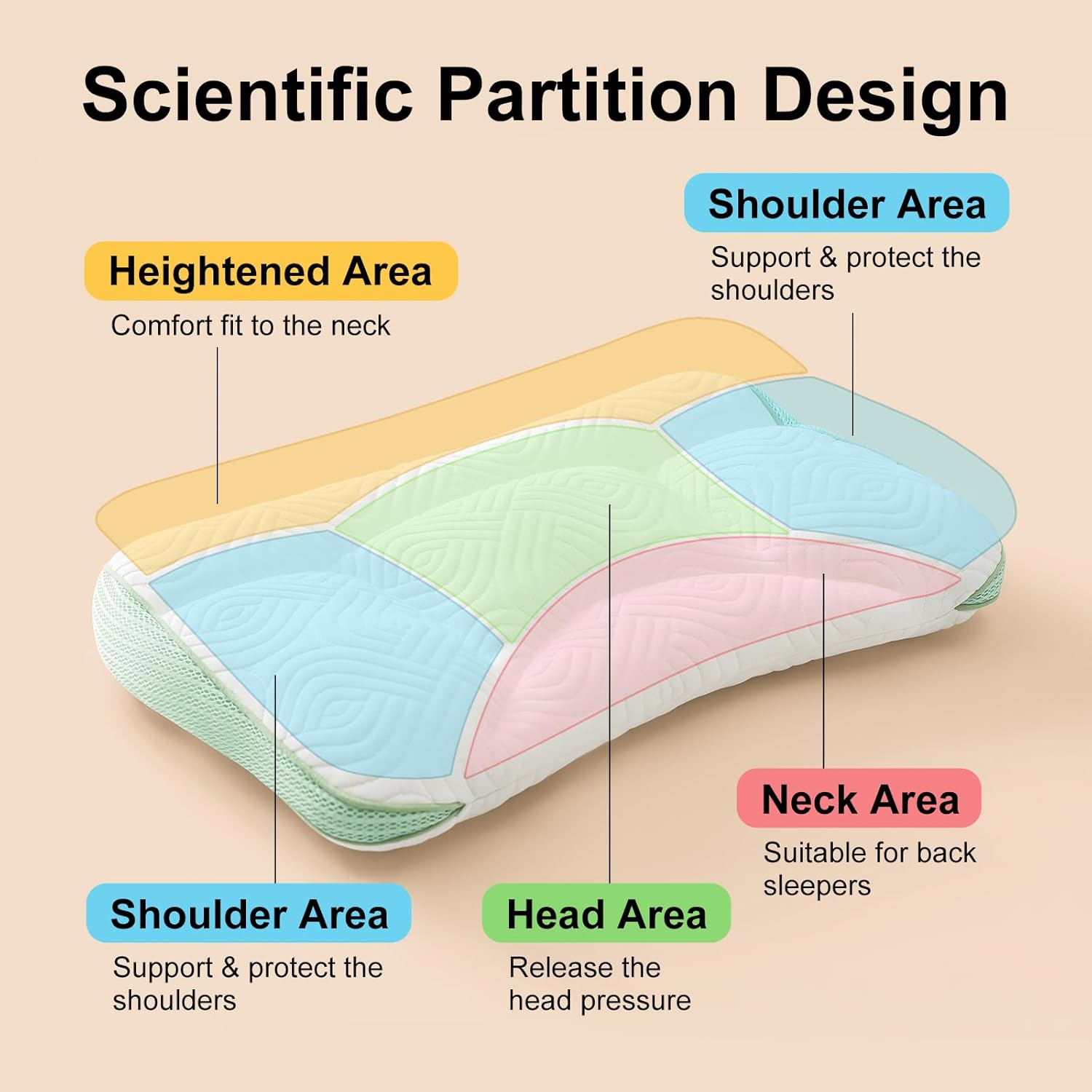 - 【Ergonomic Design】Scientific partition and contour design that fits the natural curve of toddler's neck, providing proper support for developing toddlers and promoting proper alignment of the spine. The toddler neck pillow comes in 2 lofts suitable for side, stomach and back sleepers.