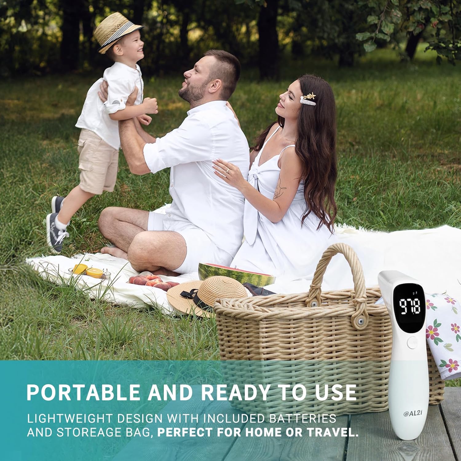 - FAST & ACCURATE DUAL-MODE THERMOMETER: The @AL21 Infrared Thermometer features both forehead and ear modes, effortlessly switching with a simple cap removal. Designed for quick, reliable readings, it ensures precision for all ages—infants, children, and adults.