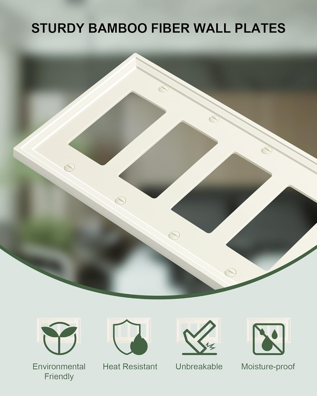 2-Pack Quad Decorator Outlet Cover Plate, Light Almond Modern Decorative Switch Plates and Outlet Covers, Natural Bamboo Fiber Wall Plates for Electrical Outlets