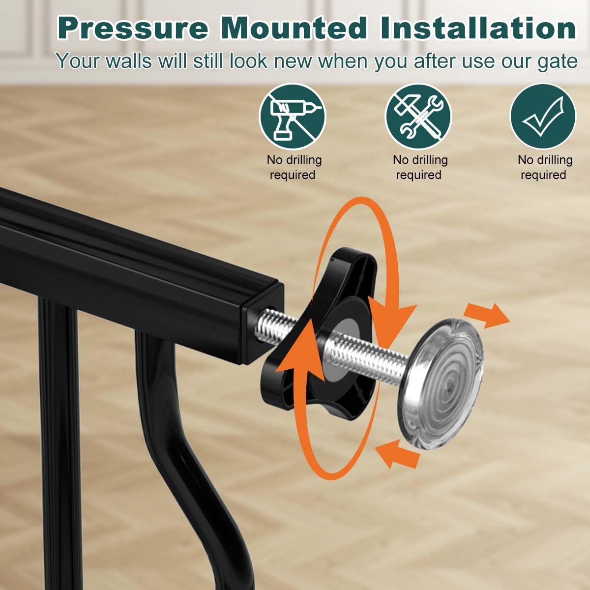- 【Simple Installation Choice】Our pressure mounted baby gate offer two mounting options: one is pressure mounting, which can be easily installed and removed without tools or drilling, avoiding damage to walls or door frames. The other is hardware mounting, designed for a permanent fit on banisters or drywall. Please refer to the manual for detailed installation instructions.