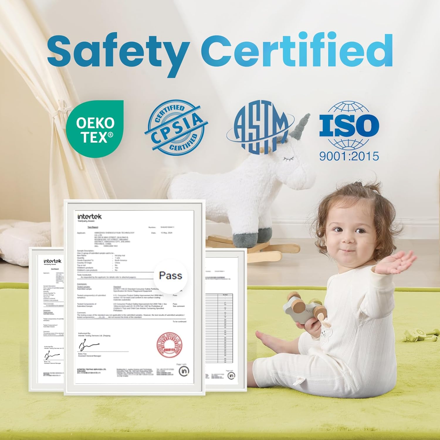 - 【Safety Certified & Fall-Proof Protection】:Made with OEKO-TEX certified fabric and CERPITUR-US certified elasti-foam, this anti-fall mat meets ASTM/CPSIA safety standards, providing a soft barrier to prevent baby from rolling off beds or furniture. Perfect for bedside fall protection and safe sleep.