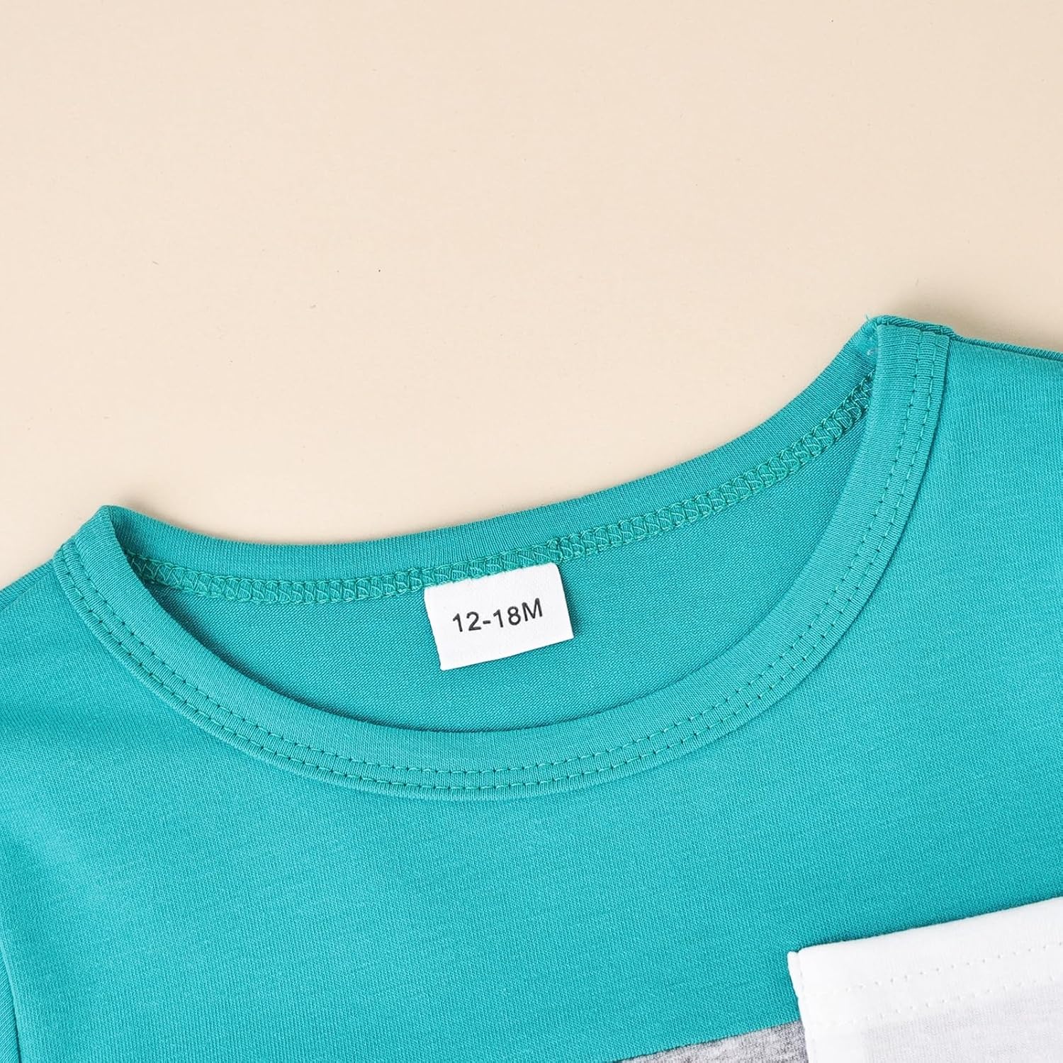 Baby Boy Clothes Toddler Boy Summer Outfits Short Sleeve Patchwork Top T-shirt & Pocket Pant Set 2 Piece 12 Months-4T