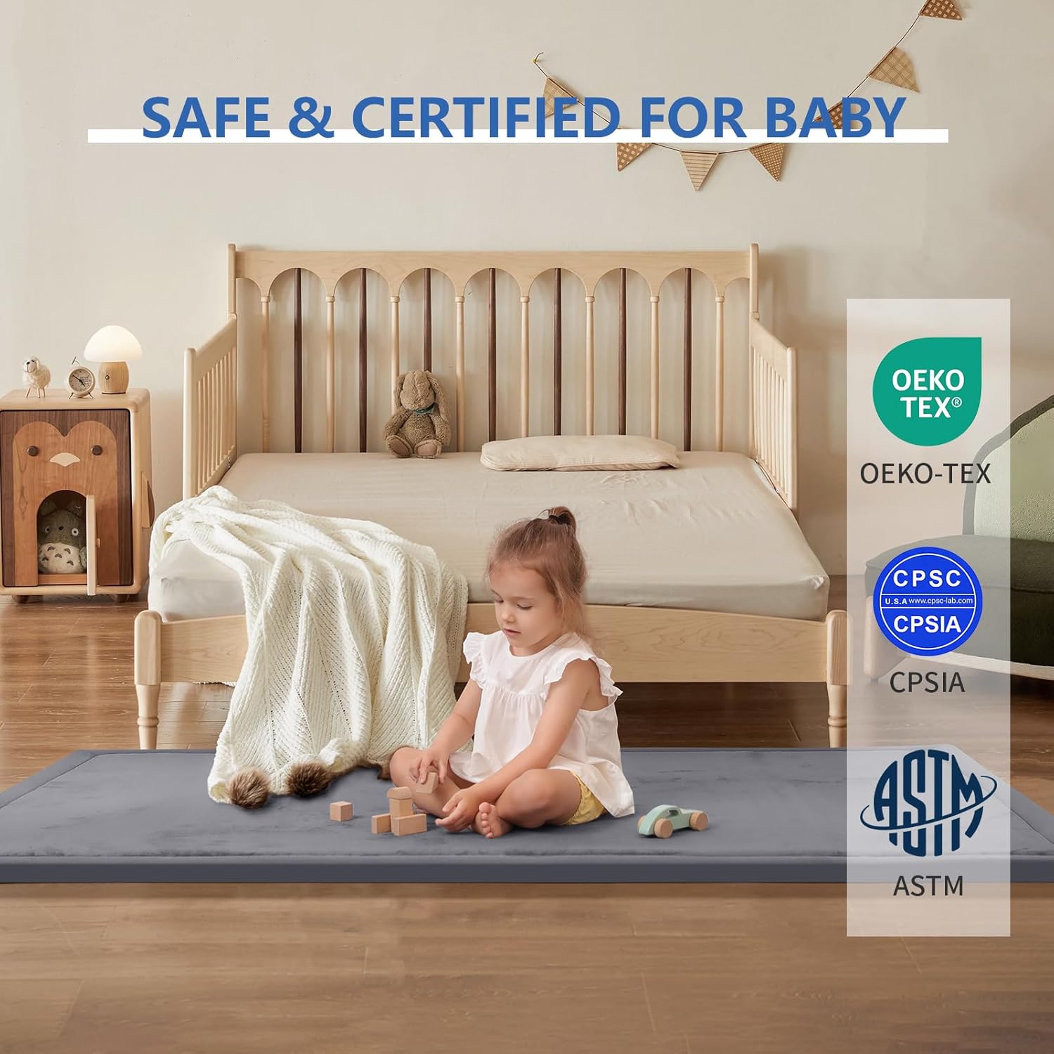 - 【Safe & Certified for Babies】Our baby play mat is designed with safety as the top priority. Certified by OEKO-TEX fabric standards and tested to meet CPSIA and ASTM requirements, this kids play mat is free from harmful substances. Parents can choose with confidence, knowing their little ones are playing on a non-toxic, ultra-soft crawling mat.