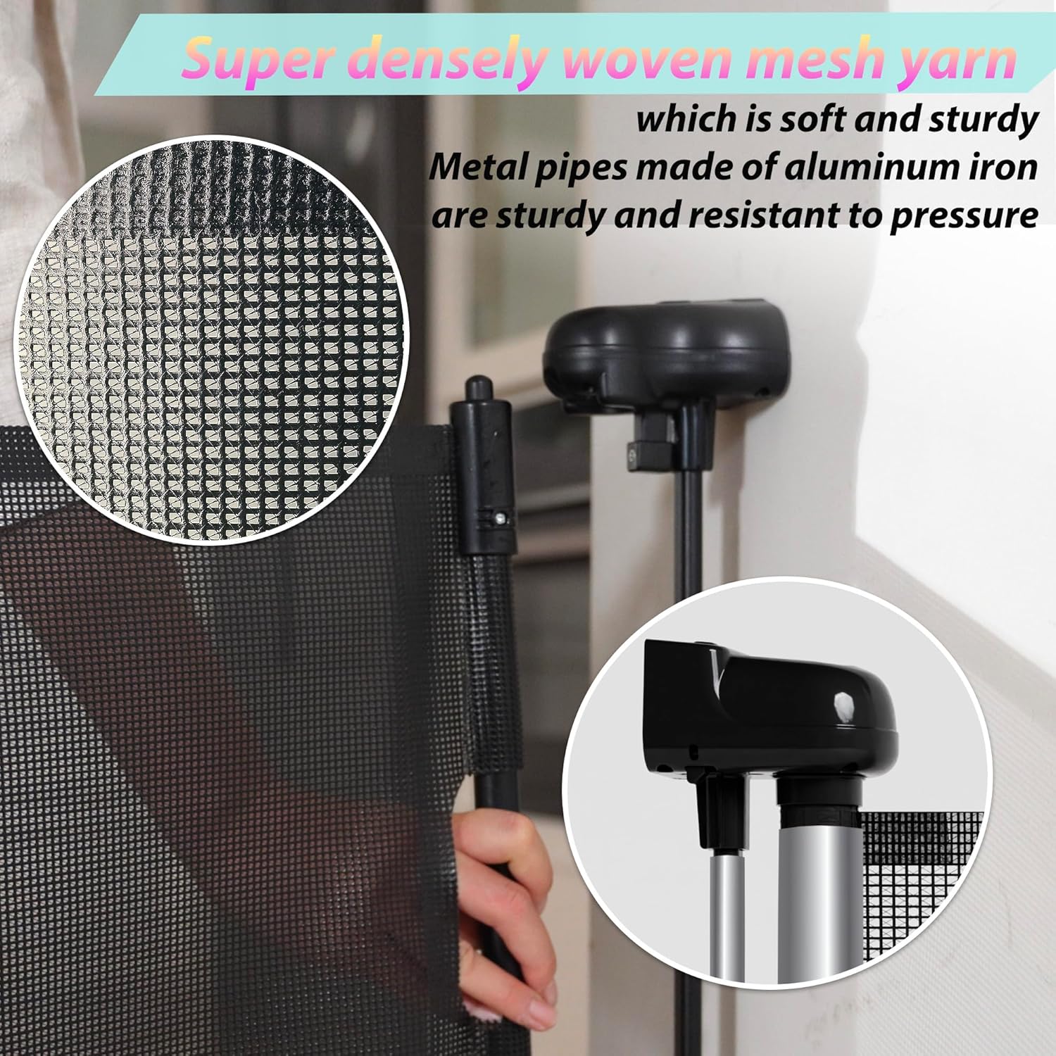 - Suitable for Indoor and Outdoor Use - Our PVC retractable fence mesh is easy to clean, even after outdoor use. Simply wipe it down with a damp cloth or rinse it with water. Ideal for installation at the top or bottom of stairs, in kitchens, near doors, on terraces, in corridors, gardens, and more—suitable for both indoor and outdoor use.
