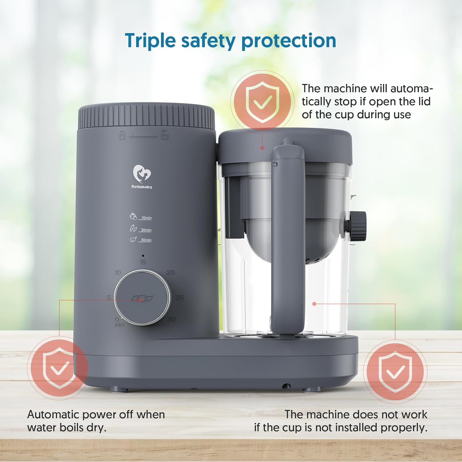 - Design for Baby: Blender cup made from Tritan material. Blades are made of 304 stainless steel. Our Baby food maker has a triple lock design, only be powered on when all parts are installed in place.