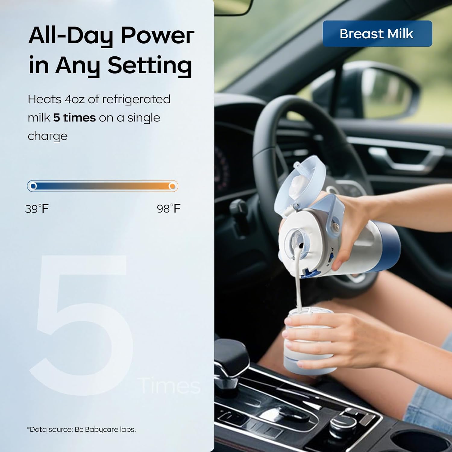 Bc Babycare Portable Milk Warmer for Travel, Portable Bottle Warmer with Fast Heating & Long Battery Life, 18 Ounces Large Capacity