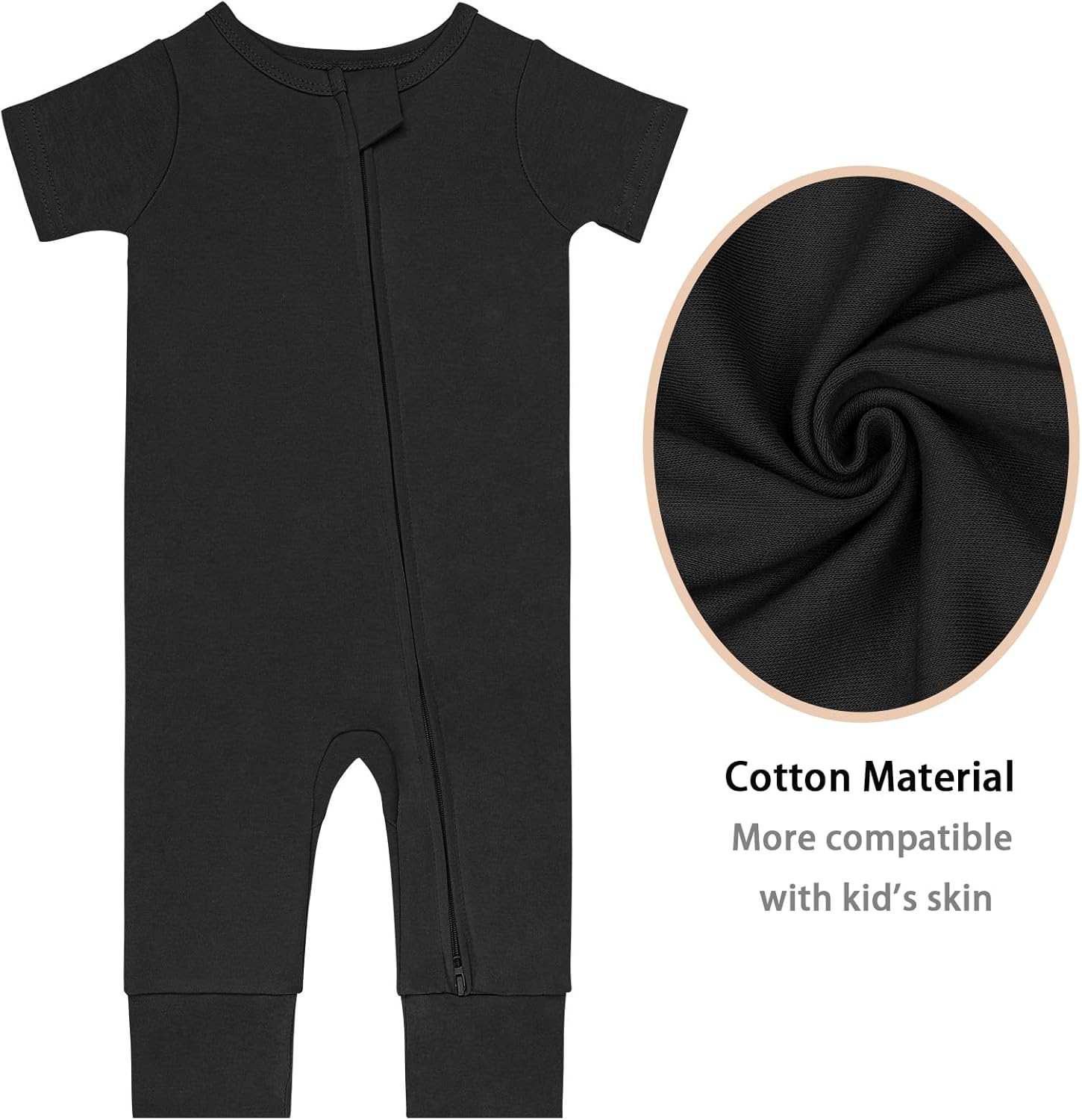 GUISBY Footless Short Sleeve Baby Pajamas with Zipper Cotton Infant Sleepwear