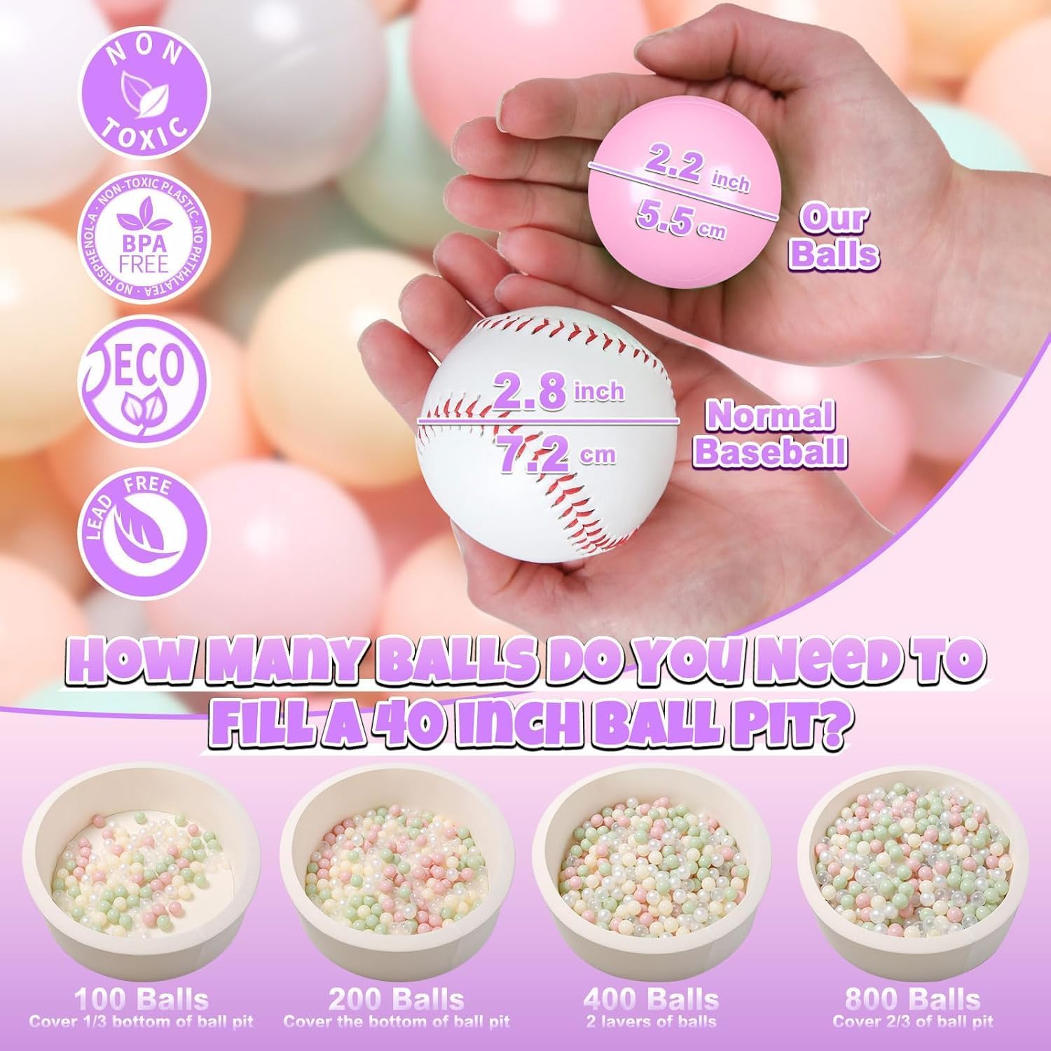 GOGOSO Balls for Ball Pit - Plastic Ball for Toddlers 1-3, Baby Kids Ball Pool Decoration 50 100 200 300 500 1000 (6 Colors, 200 Balls)