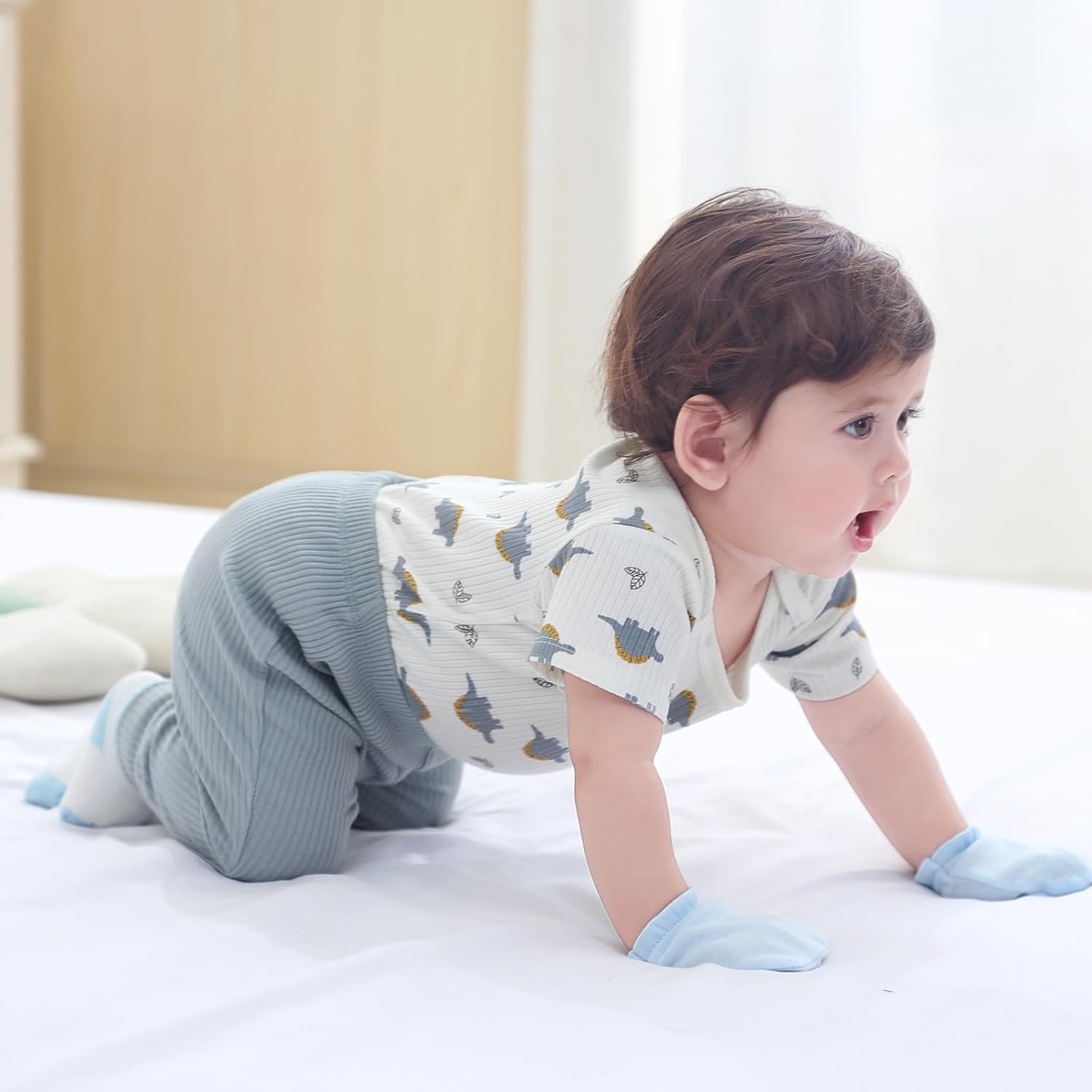 • Fabric: 95% cotton+5% spandex, pants are slightly thicker than tops. Both bodysuits and pants are soft, breathable, and elastic