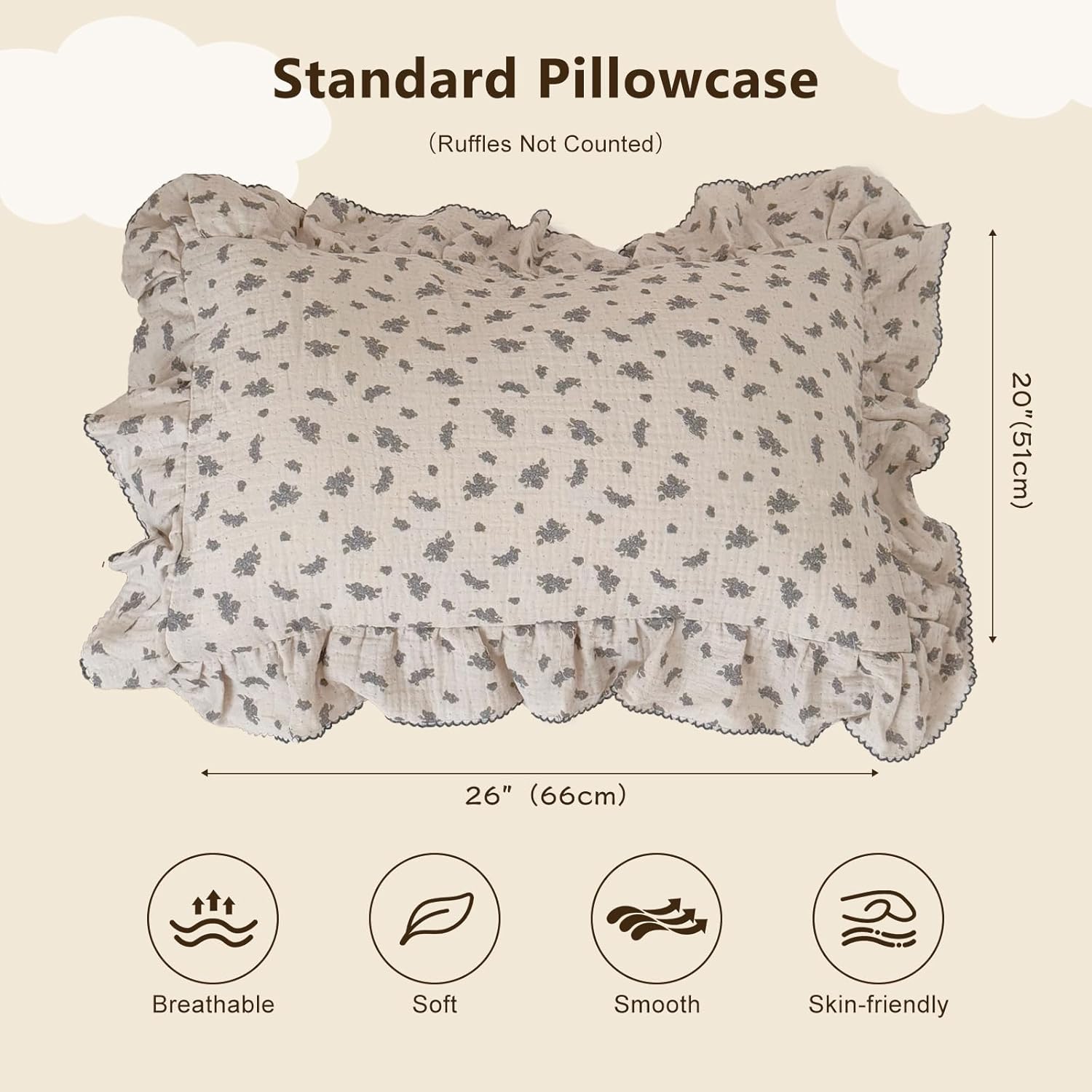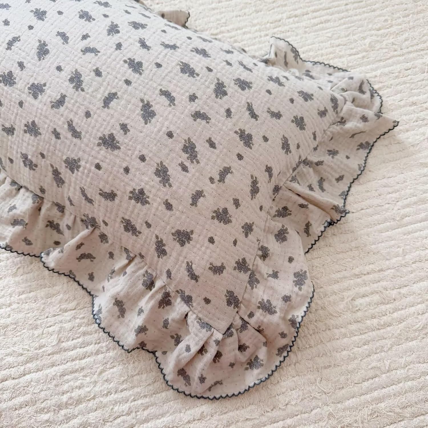 - 【Cute Pattern】 Cotton muslin toddler kids pillow covers designed with blue orchid flower & dots patterns and ruffles on the edges. The chic shabby style is suitable for both girls and boys.【Please understand this is just pillow cover, the pillow insert/filling NOT included.】