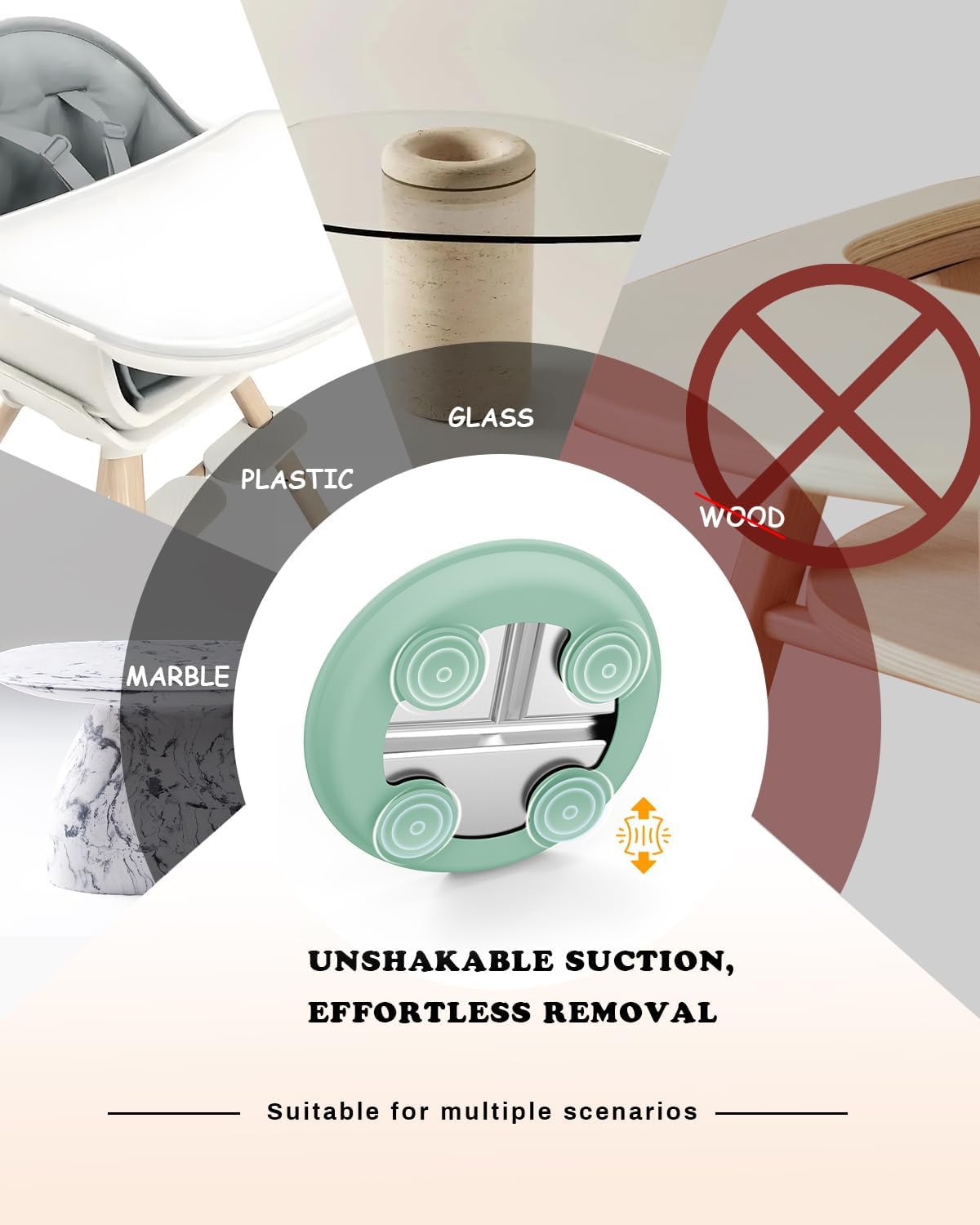 - High Chair & Stroller Ready: Compact 8" diameter specifically engineered to nestle securely in most high chairs, making restaurant outings and road trips 40% cleaner. Please measure your tray before purchase. Avoid rough wooden tables for optimal grip