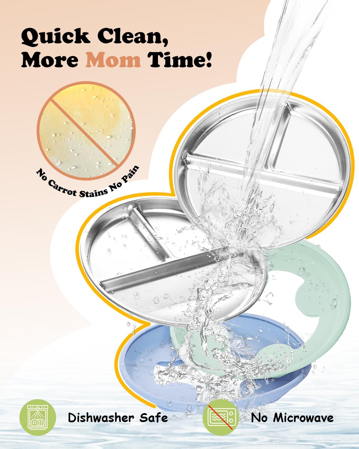 - Hassle-Free Cleaning: Resistant to food stains like carrots, the smooth stainless steel surface is easy to clean. Both the toddler plate and silicone suction sleeve are dishwasher-safe, making cleanup quick and stress-free for busy parents
