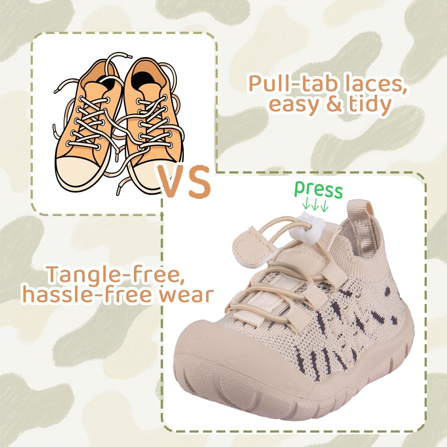 - Slip-On Safety & All-Day Grip:Elastic collar slips on easily for squirmy toddlers. Deep anti-slip treads grip wet floors, gym mats, and grassy slopes. Reinforced toe caps shield feet during sports or rough play. Ideal for new walkers seeking stability.