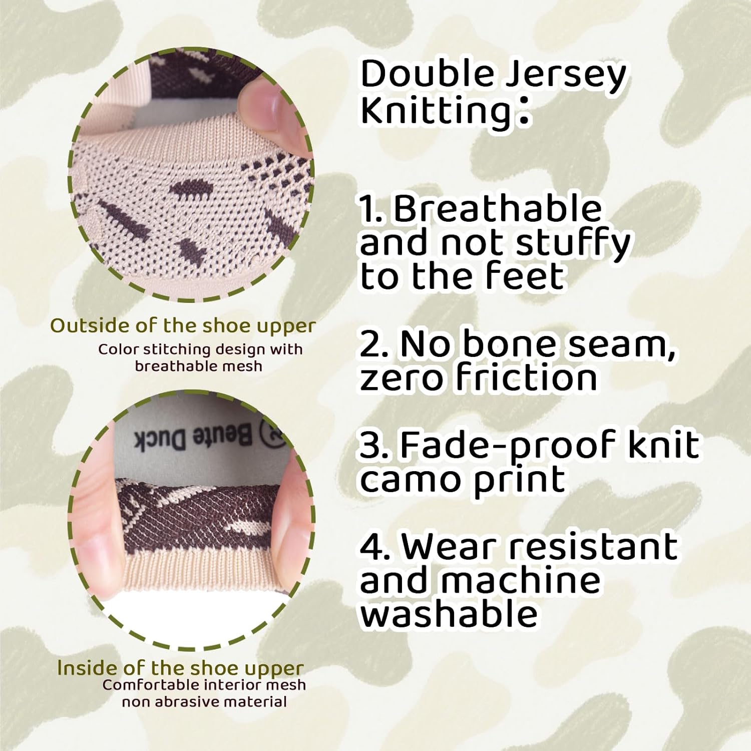 - Bold Style, Seamless Comfort:Double-sided knit design: rugged camo exterior for confidence, smooth interior for irritation-free wear. No bulky seams or pressure points. Let kids flaunt their personality while enjoying sock-like softness all day long.