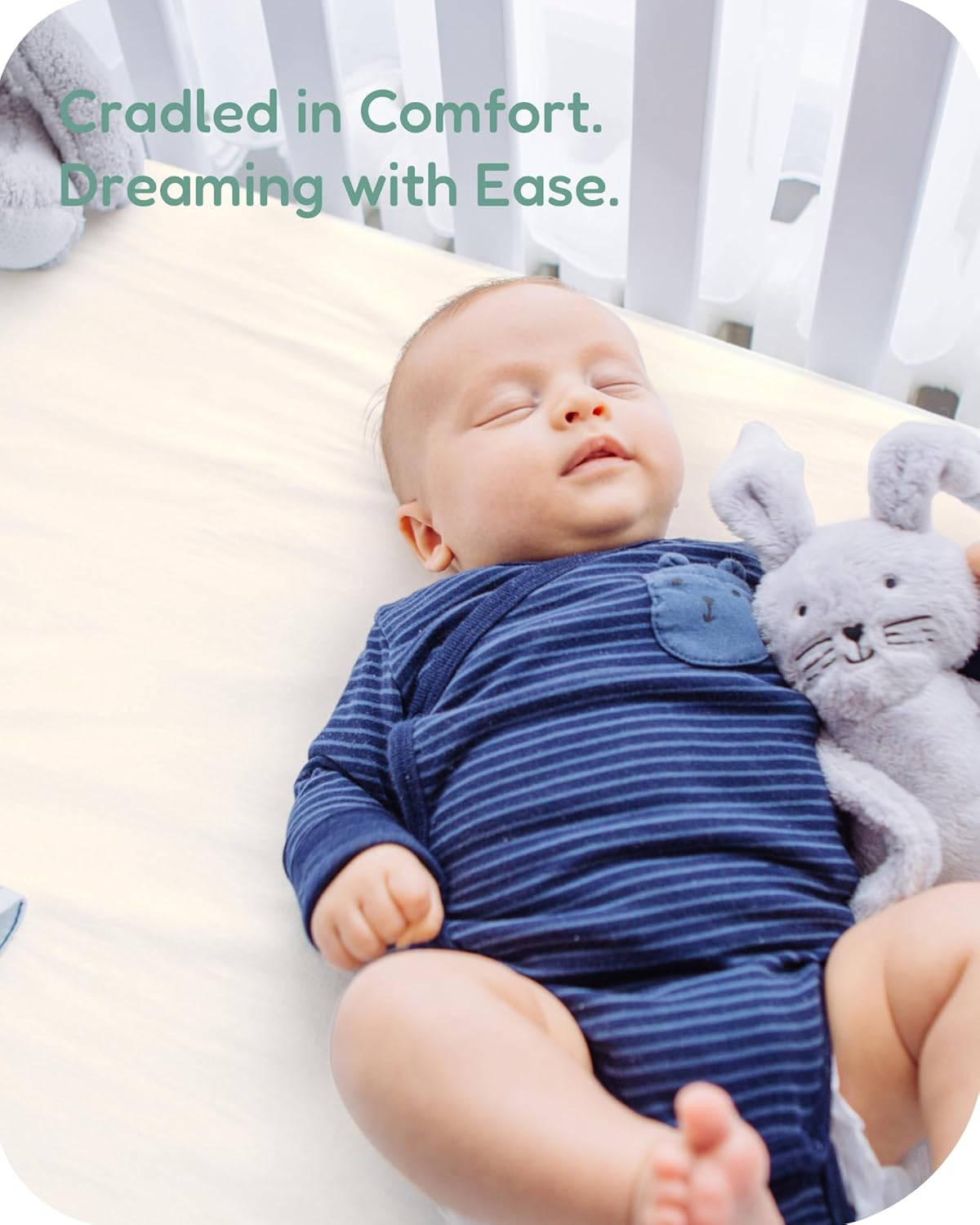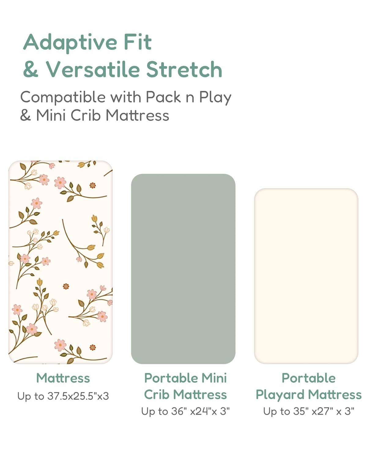 - Premium Softness & Comfort: Crafted from high-quality polyester, these mini crib sheets fitted are buttery soft, breathable, and temperature-regulating, keeping your baby cozy throughout every season. The gentle stretch ensures a snug fit, while the fabric remains airy yet warm for all-day comfort.