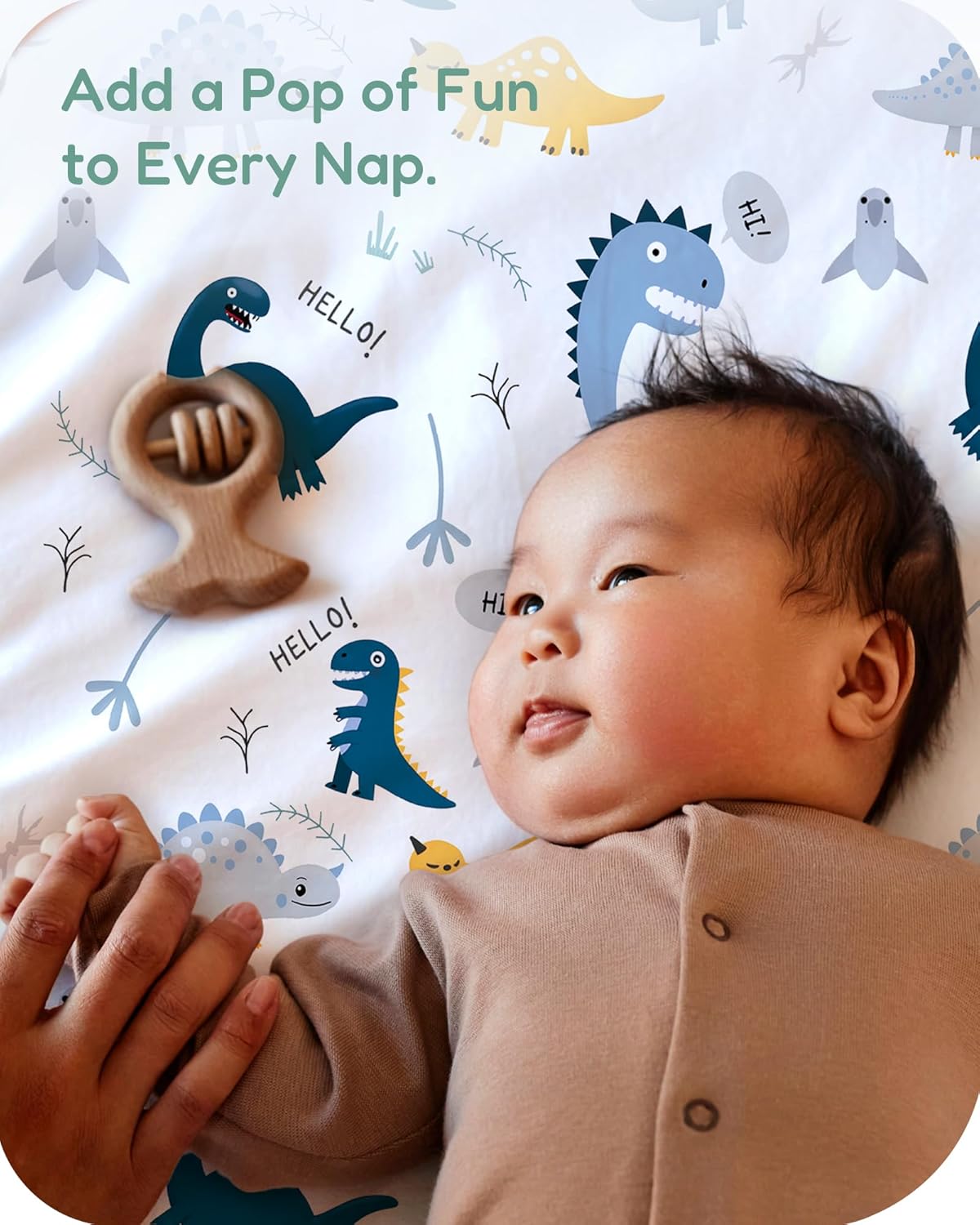 Pack and Play Sheets Fitted, Dino Animals Blue, Soft and Stretchy, Hypoallergenic and Safe, 2 Pack for Mini Crib and Pack N Play