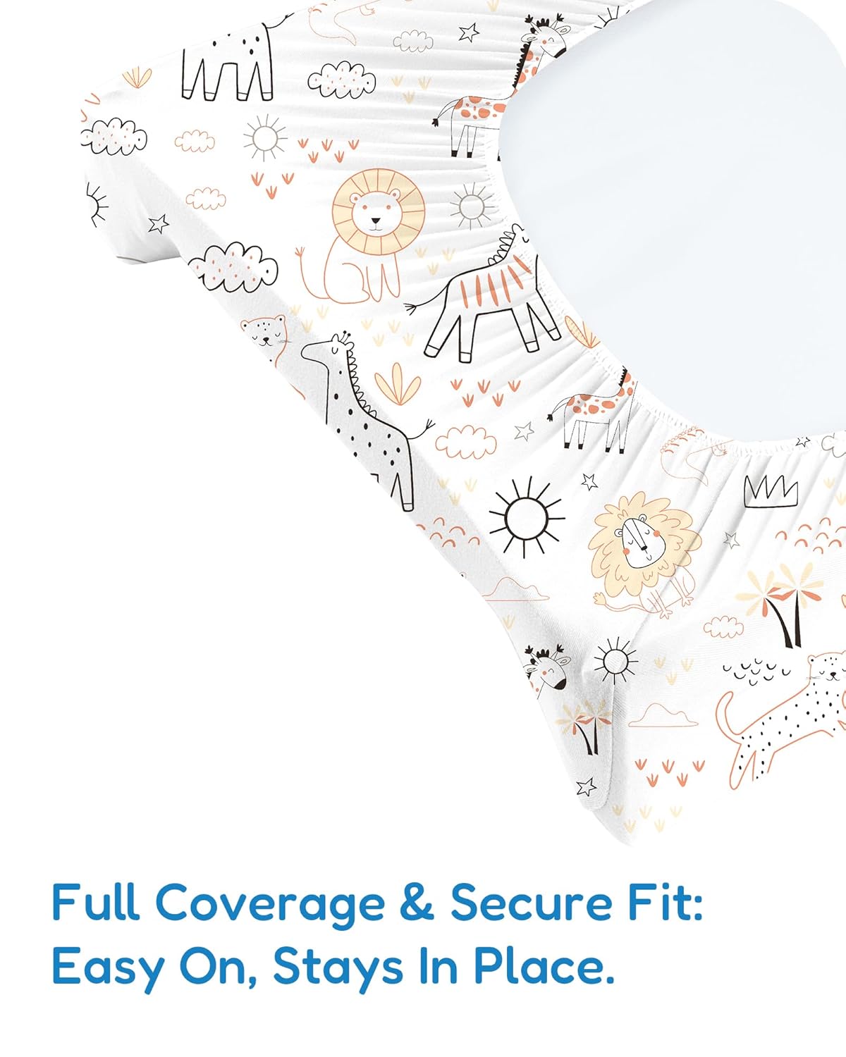 - Secure 360-Degree Elastic Fit: Designed with fully encased 360-degree elastic, this baby changing pad cover fits snugly around your changing pad, preventing slipping or shifting during diaper changes, providing a stable and secure surface for your baby.