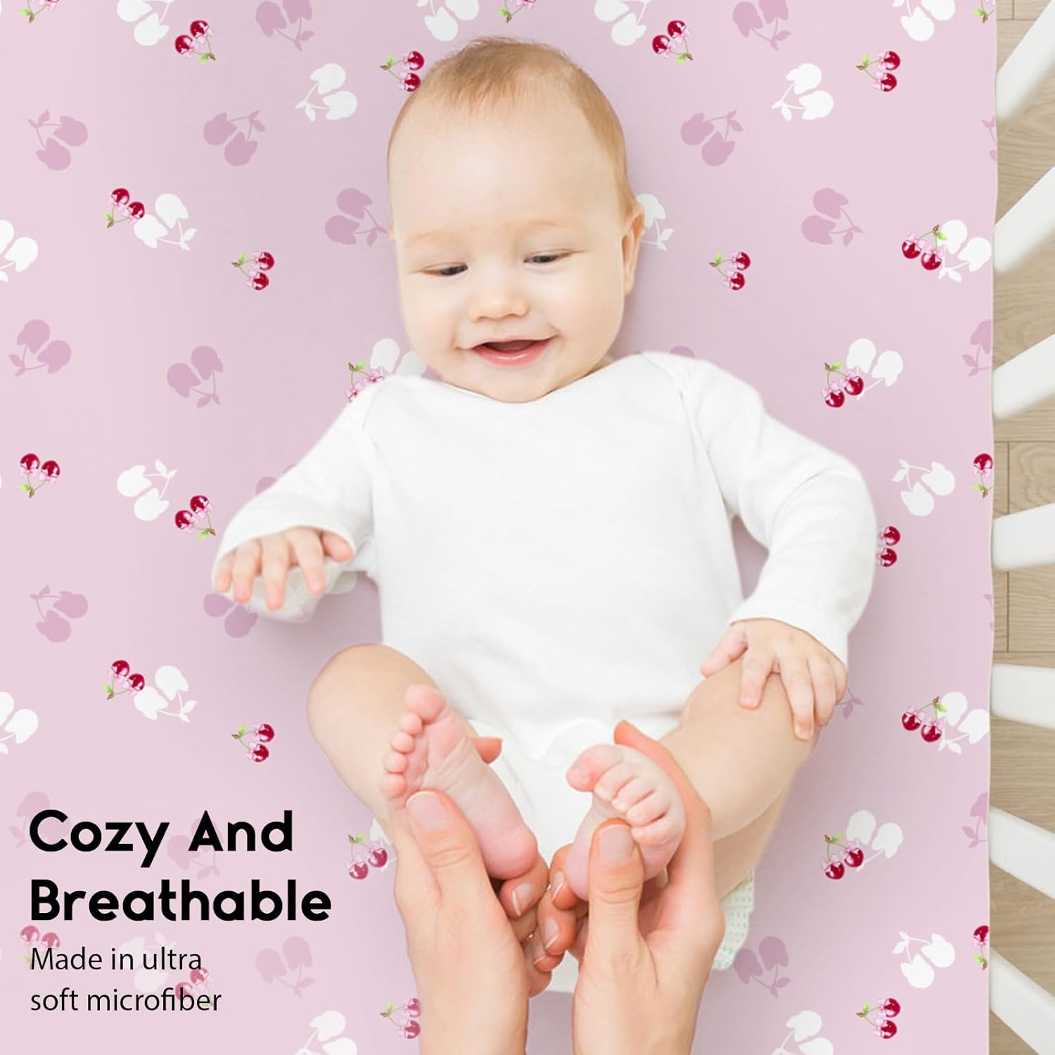 Yoofoss Baby Crib Sheets for Boys Girls, Fitted Crib Sheet 2 Pack for Standard Crib and Toddler Mattress, Super Soft Microfiber Baby Sheet 28x52x8in(Pink+Cherry)