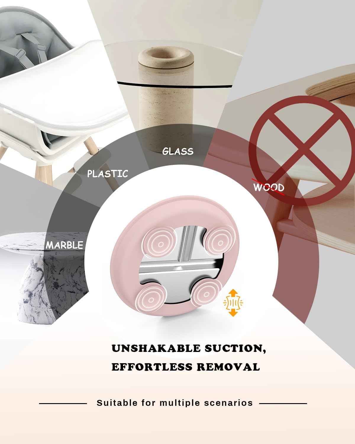 - Innovative Design: This baby plate with suction combines durable 304 stainless steel with a silicone suction base featuring 4 strong, non-slip suction cups. Keeps plates in place on highchair trays or tables, helping your child self-feed and minimizing mealtime mess. Say goodbye to flipped toddler plates and hello to free hands for mom!